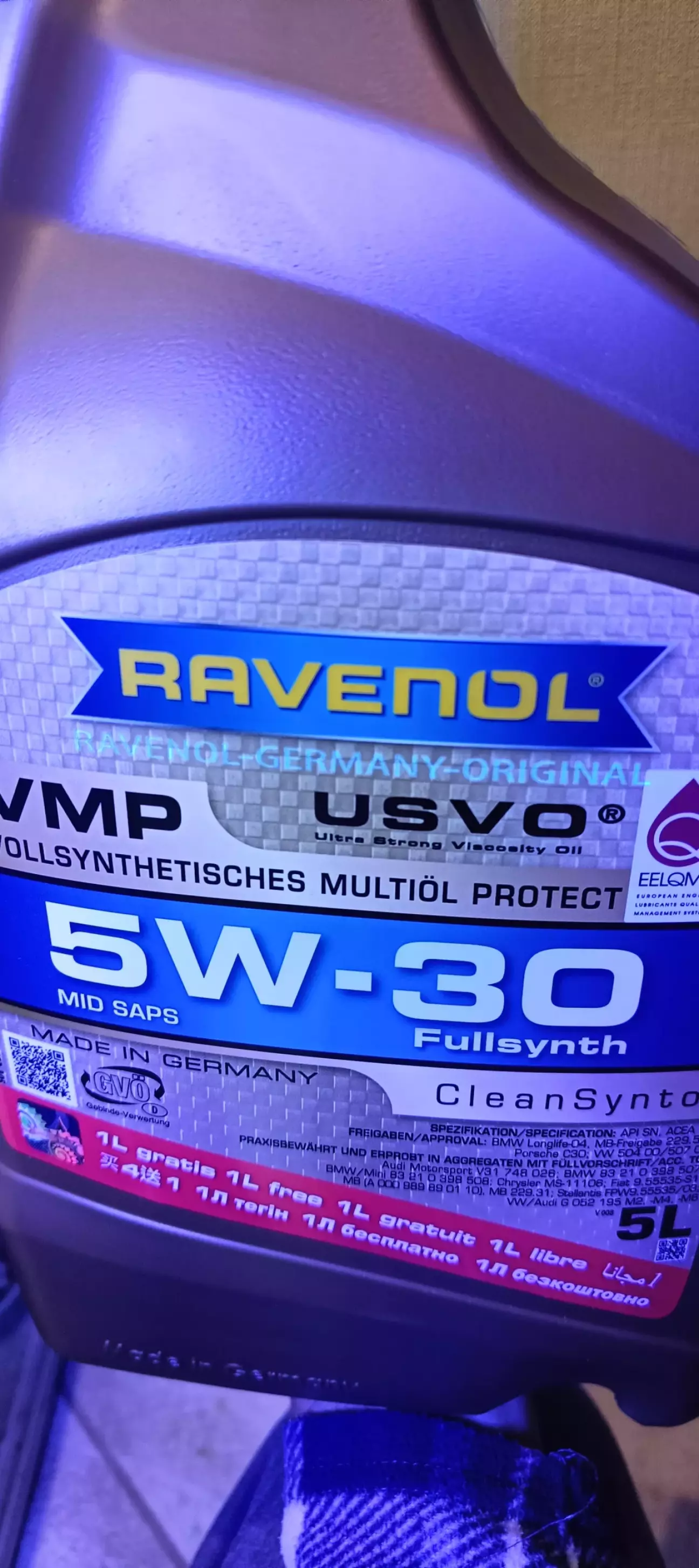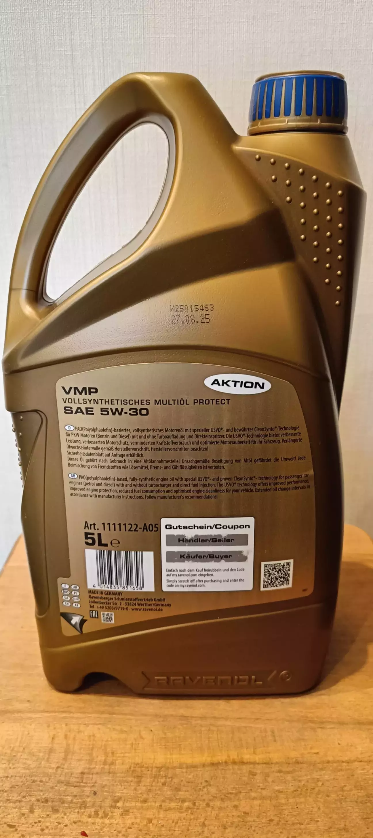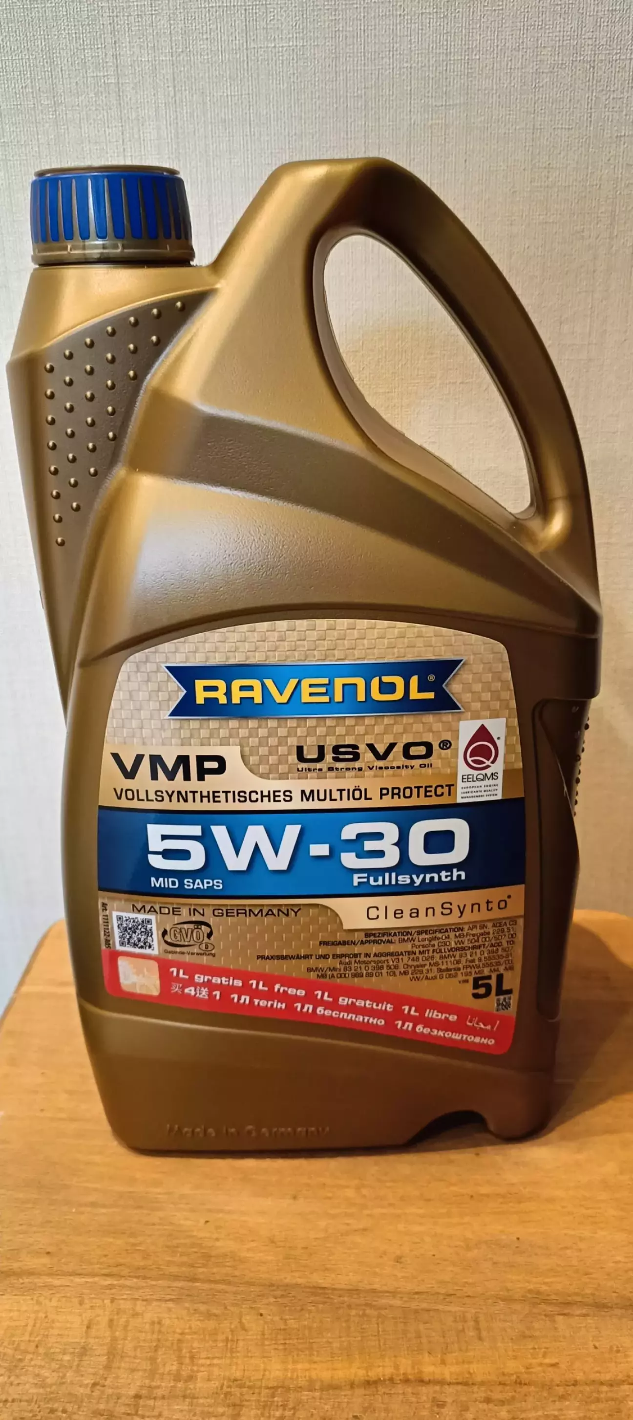 Цього разу вирішив спробувати щось преміальніше і звернув увагу на мастила на ПАО-основі. Вибір впав на Ravenol VMP 5W-30. Каністру перевірив на оригінальність — усе ок.