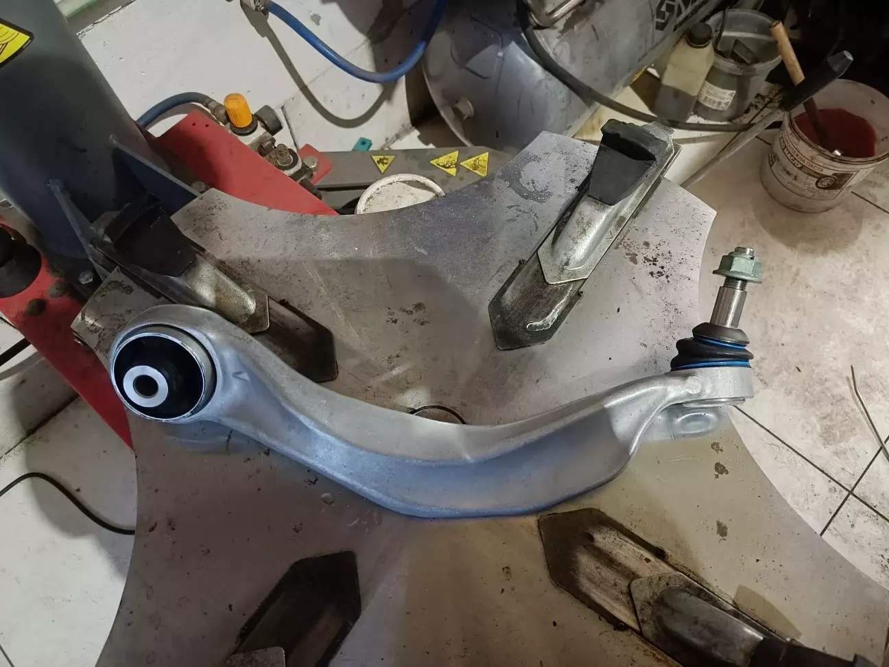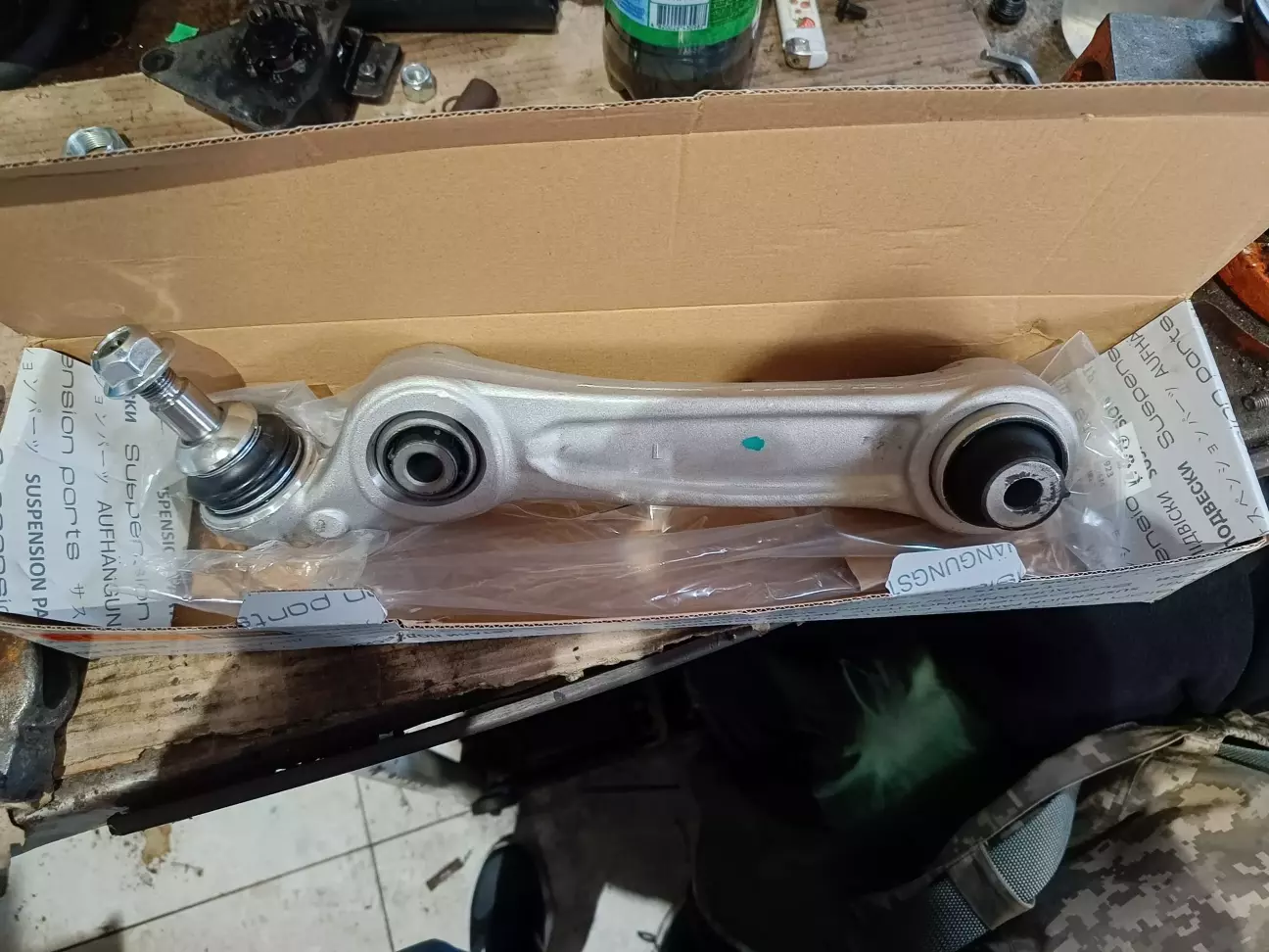 Як уже розповідав в першій частині (Частина 1) не виставлявся розвал. Була куплена б/в цапфа, також виявилось, що треба поміняти 2 нижні ричаги, один ще живий (порвався пильник), сходу нічого по розміру пильників не знайшли, а часу на пошуки не було, тож прийшлося купити новий ричаг)