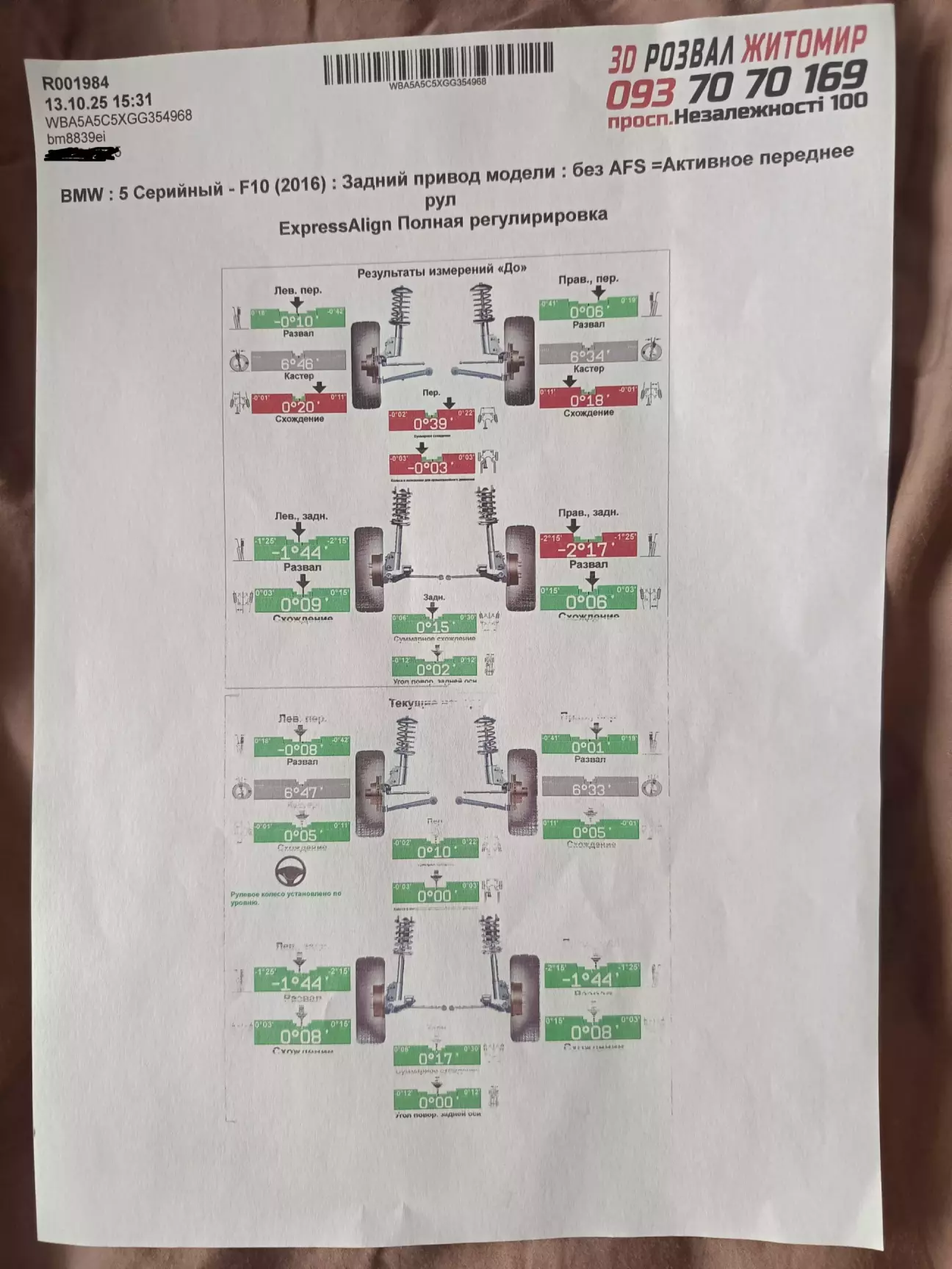 Після заміни цапфи і ричагів поїхав робити розвал-сходження, цього разу все вдалося зробити, проблема була в цапфі(була зігнута на 2 см).