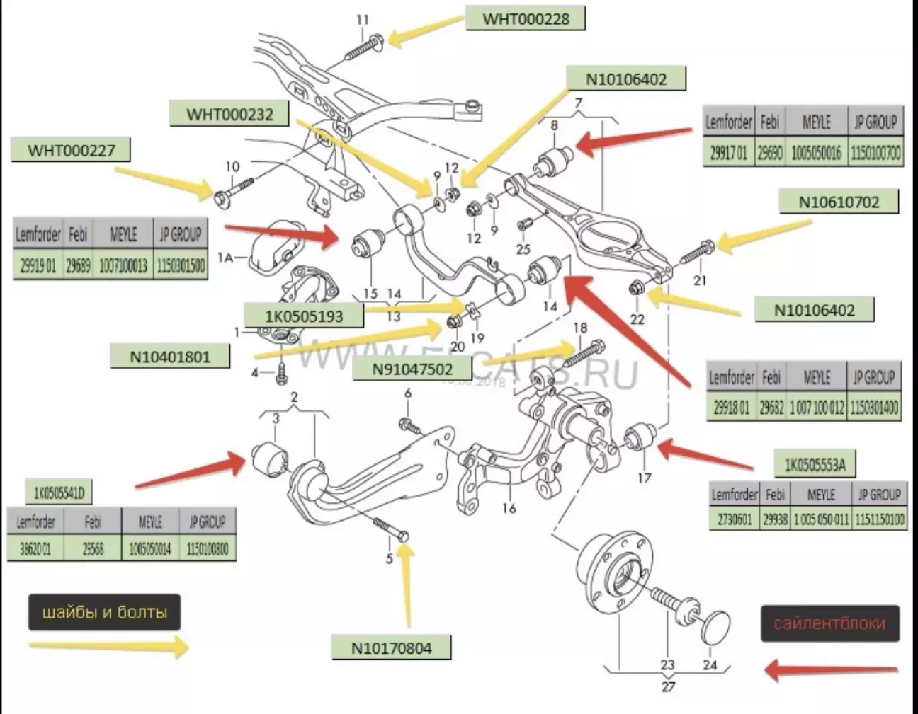 УВАГА: артикули на фото — це самі сайлентблоки без алюмінієвої обойми! Якщо ставите в рідну заводську обойму — все підійде. Якщо в неоригінальну — можливі відмінності в посадкових розмірах.
