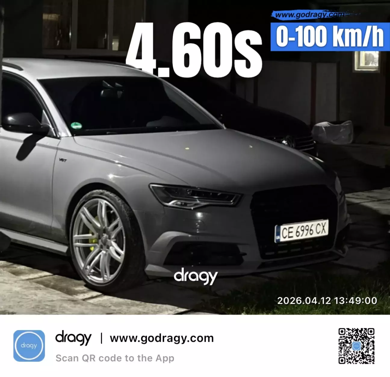 Audi-biturbo, +62к.с +138Нм, на 0,5 сек швидше до 100, по «сракоміру» то я вже звик, але брат катає на стоці і кожен раз коли бере мою ауді то рветься на чіповку, бо для нього колосальна різниця, треба враховувати те, що машина не нова і вже в стоці не виїде з 5 сек. Плакати хочеться від 100-200, один раз в мене вийшло 12.31 так все більше 13,6. Думаю, що має вийти ще краще так як замір на зимових тріангелах.