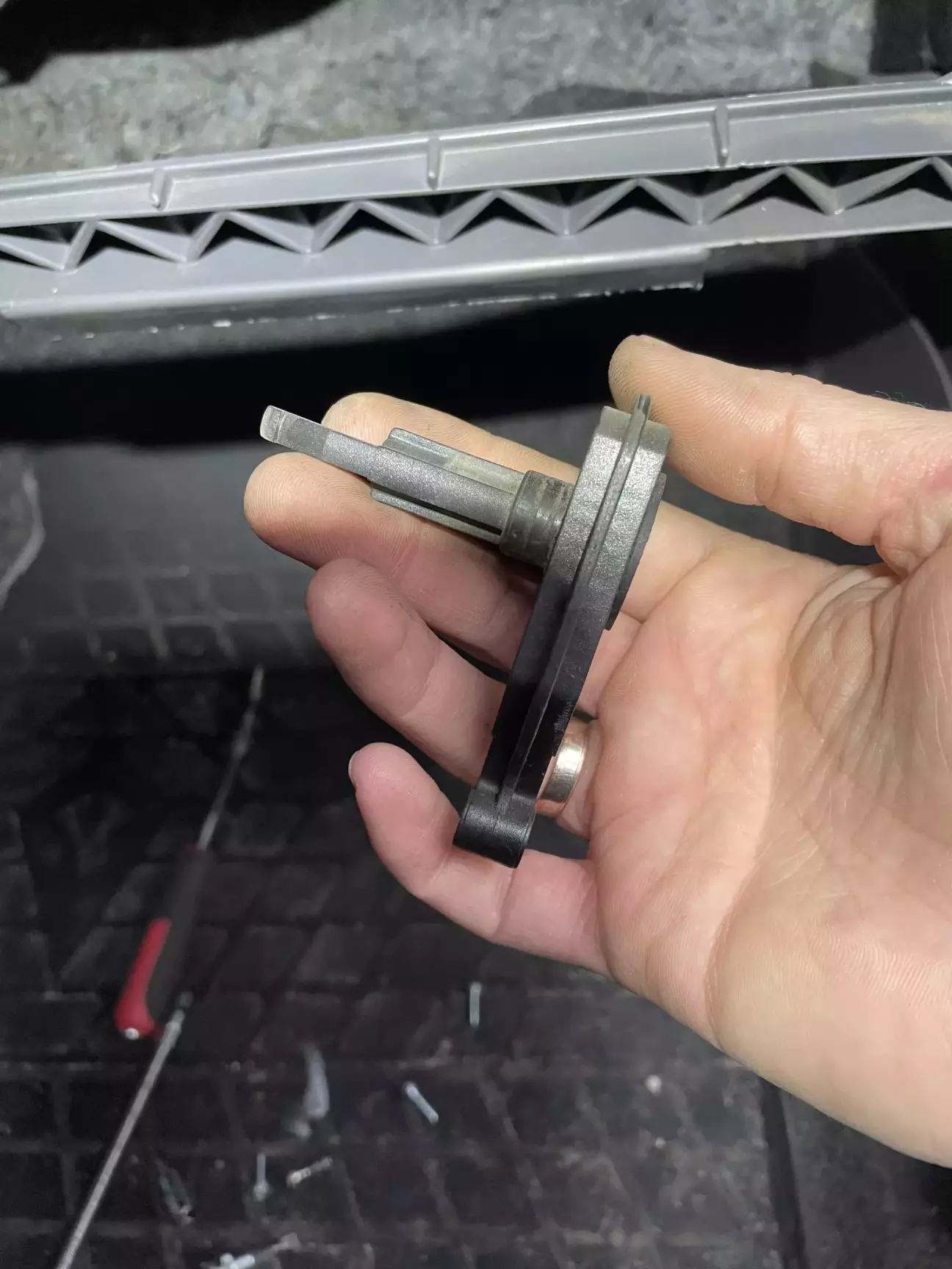 Теперь при нажатии на кнопку рециркуляции обе заслонки приходят в движение, возможно звук был из-за хлопания заслонки а возможно из-за осевого люфта моторчика печки. К сожалению не смог разобрать мотор чтобы подложить шайбу поэтому поставил обратно как есть и буду надеяться что стучала заслонка а не моторчик печки)