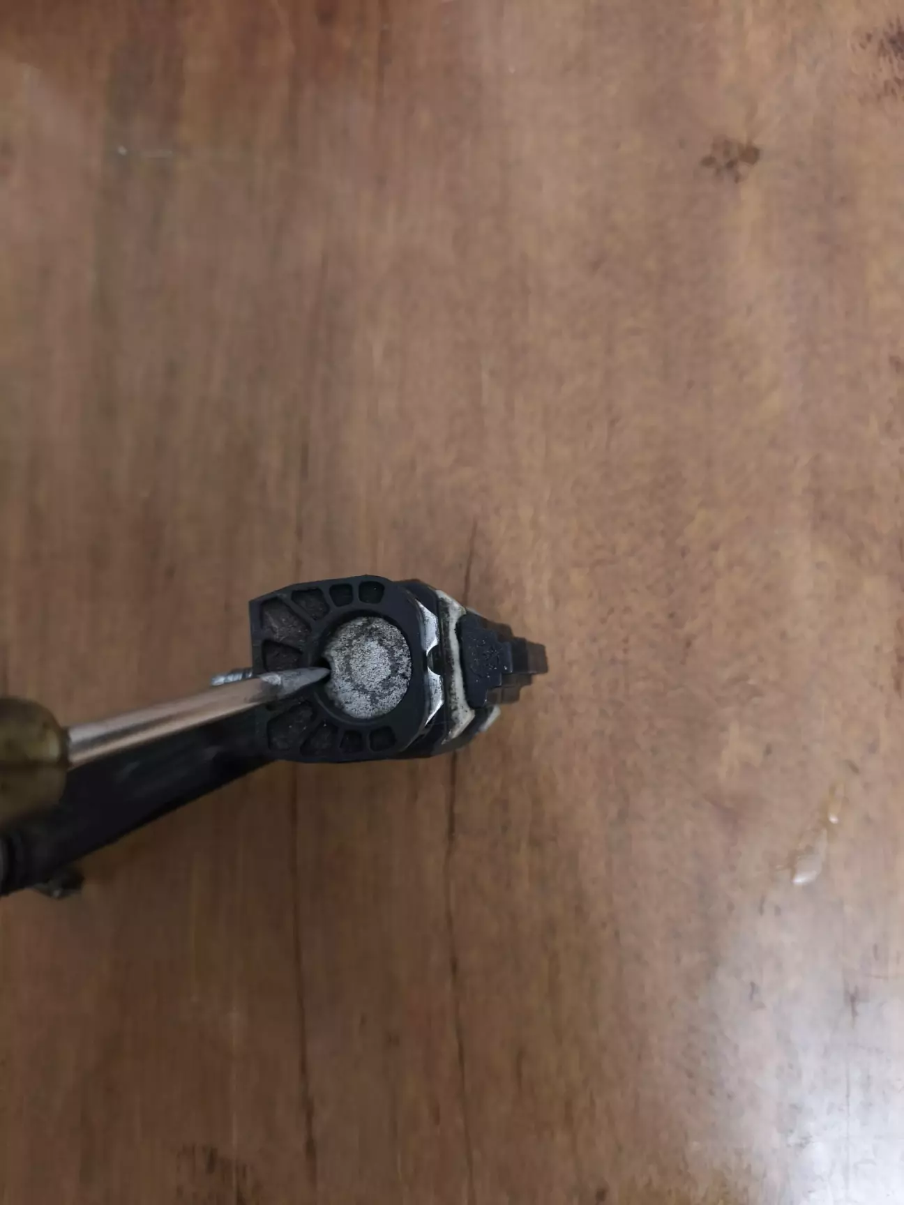 Далі дістаємо пружинку, дістаємо старий сухар, заливаємо в посадочне місце мастило, вставляємо новий сухар, вставляємо в нього пружинку, вчимось її сильно стискаємо і в цей момент намагаємося засунути фіксаторну пластину назад. Аналогічно з іншої сторони.