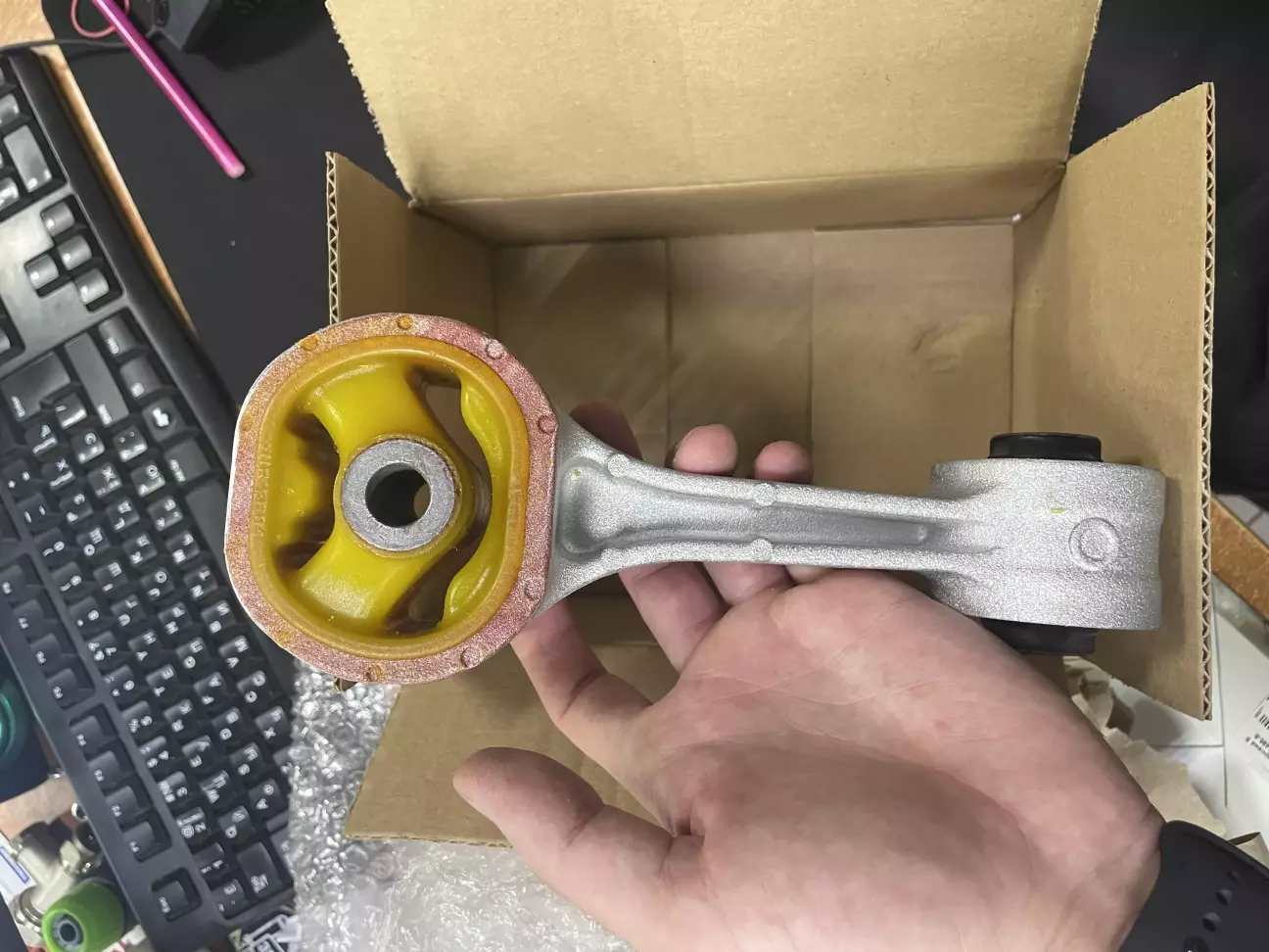 Вітаю! Всі власники рано чи пізно стикаються з цим витратником… ресурс подушки 100-150к, все дуже індивідуально. Нова 100-120$ і забувся, але це все нецікаво) цікаво знайти робочий аналог. Тому був проведений експеримент. На першому етапі була поставлена подушка від Фіта, яка ідентична за розмірами, але через певний час в клубній групі почали писати що вона ламається(сам корпус). Далі було вирішено оригінальну відреставрувати поліуретаном.. результати: від фіта проіхала 10к, ціна 800грн(на той момент), знята повністю цілою та замінена на відреставровану (ціна 1300грн) проїхала 15к і далі їздить. Як тільки обірветься, якщо ще буде це авто у володінні, буд відповідний пост, так як є багато скептиків поліуретану…