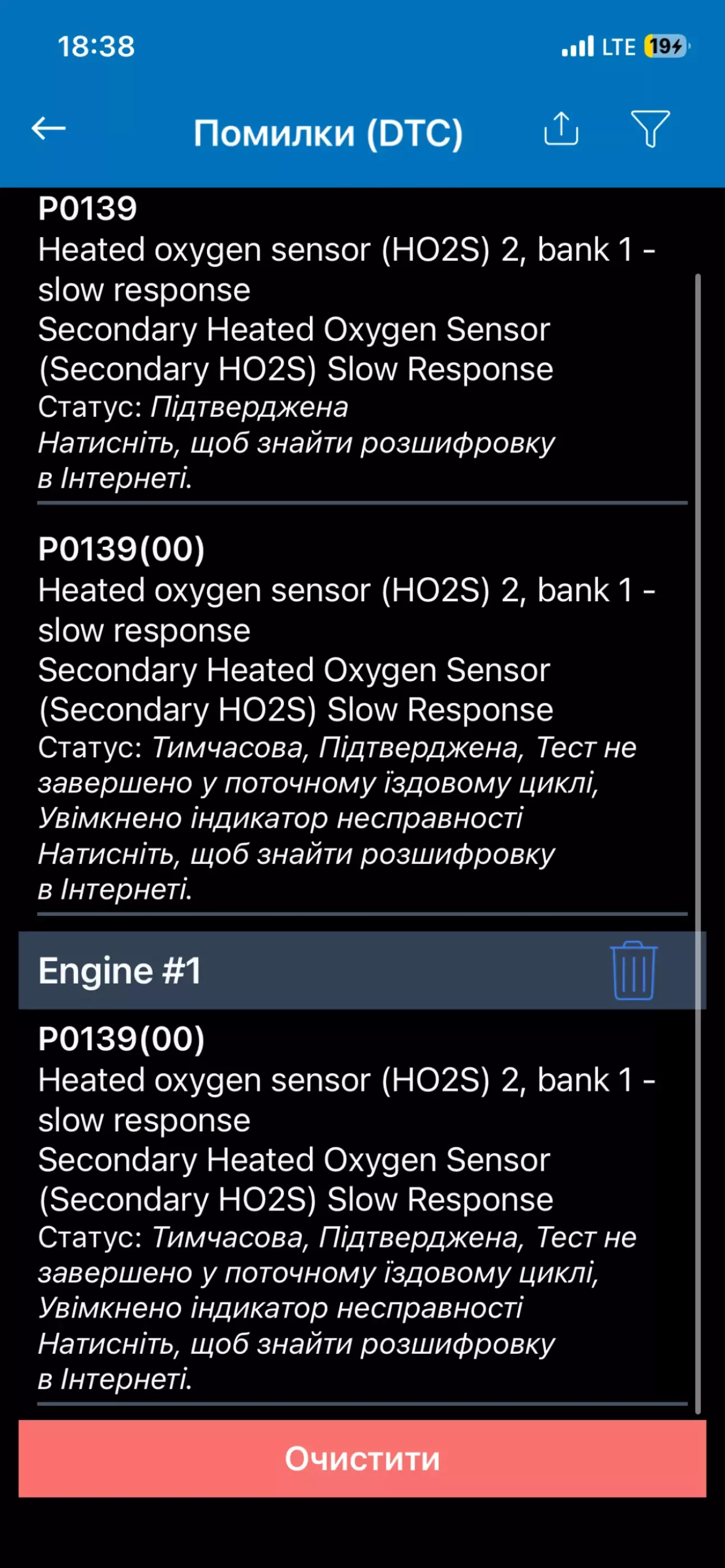 Вітаю! Код помилки побачили, emission system problem світилося на панелі приладів. Діагностика а потім в заміна показала смерть 2 кисневого датчика. Чи то час прийшов, чи їзда з погнутим резонатором і трубою зробили свою справу. Замінено було на оригінальний бу з розборки за 50$. Тепер все працює :)