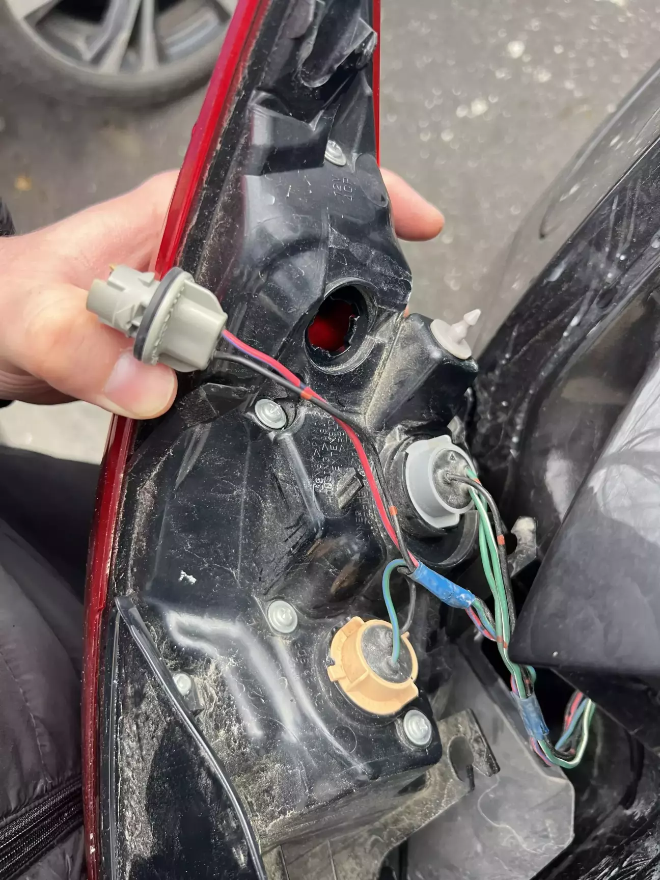 Знявши задній лівий ліхтар, побачив на ньому якийсь не зрозумілий бічний цоколь, під маленьку лампочку Т10 W5W, але в том місці ліхтаря з обох сторін в мене нічого не світилось). Перша думка, перегоріли лампочки з обох сторін, або стоїть універсальна проводка для ліхтарів USA/EU ), типу як спереду, фішки на туманки є, а туманом нема).