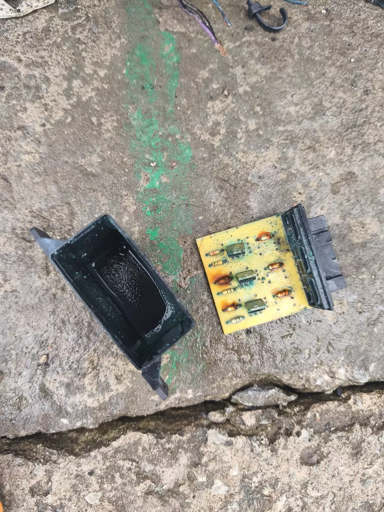 (як це все не закоротило та не спалило мені блок я не розумію) Все що йшло з кришки я заізольвав там де переломалось(може колись під'єднаю фарком) а все інше я я витяг разом з двома блоками (блоки згоди фаркопа та електрики кузова) які стояли за пластиком, з них лилась зелена вода( залишки плат), тож все зайве я видалив.