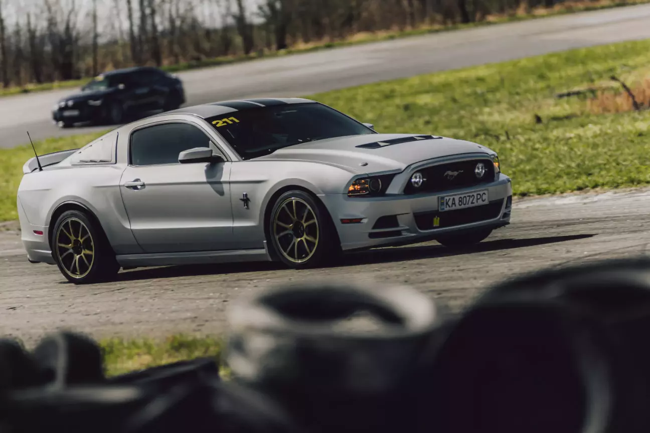А ось і під'їхали гарні фотки Мустанга з останніх трек днів, за що я вдячний фотографу Анні. Дуже мені сподобались ці кадри в динаміці - в повороті на швидкості десь 100 км/год. І можна подивитись як працює підвіска, і чи треба підкрутити стаб від кренів.