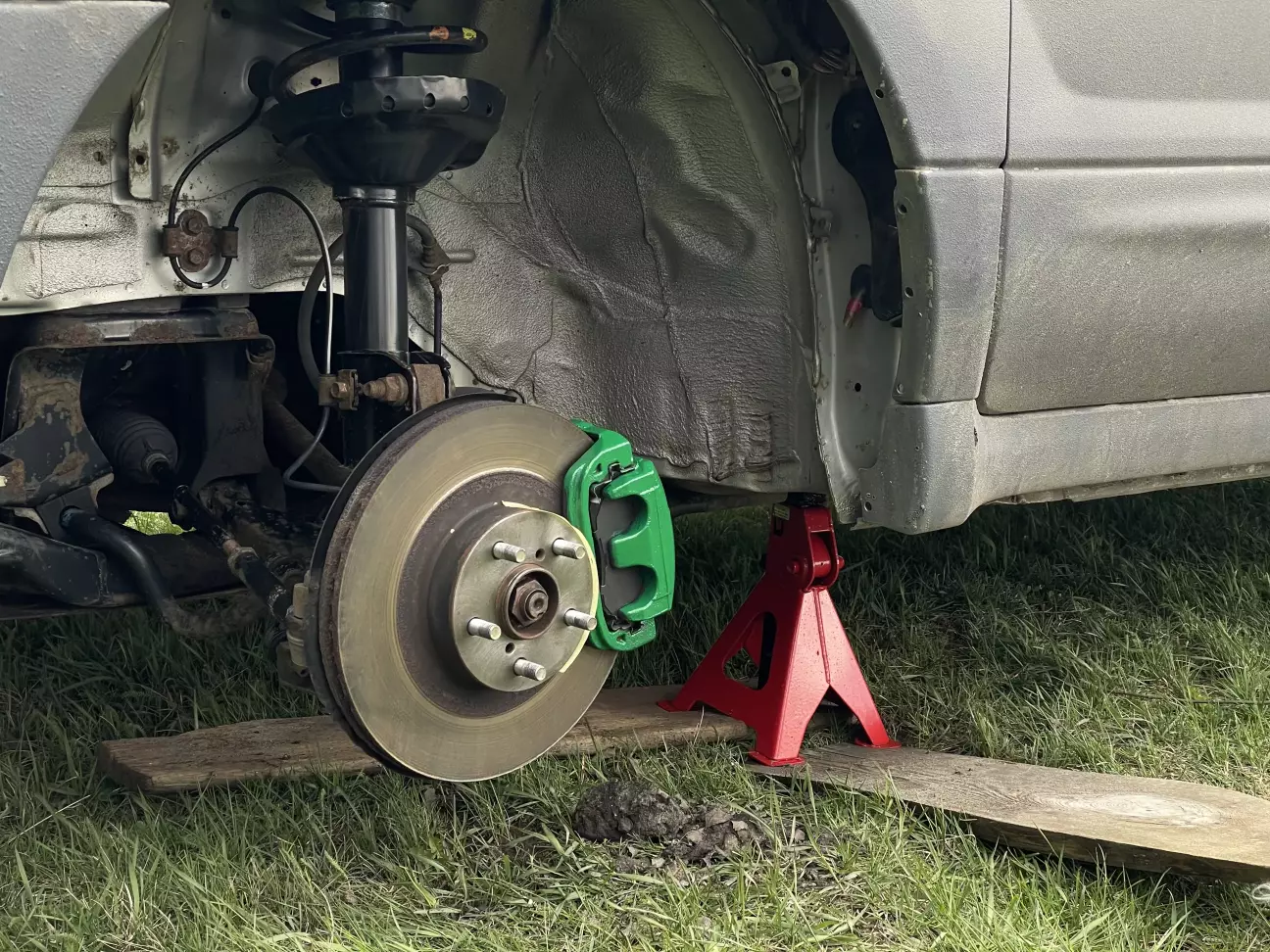 Пользуясь снятыми колесами, покрасил суппорта. Просто что бы красиво было🙂