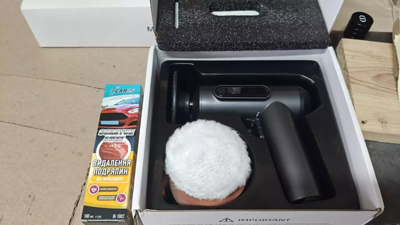 Колись на AliExpress я придбав полірувальну машинку… якщо цей пристрій узагалі можна так назвати. Ціна питання — близько 10 доларів. Додатково купив абразив для видалення подряпин — найдешевший варіант з «Епіцентру» за 140 грн.