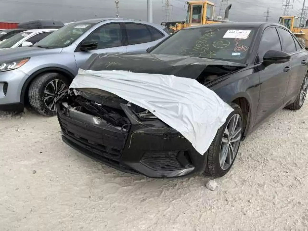 Чорна Audi A6 2021 року у комплектації Premium Plus з максимальними додатковими опціями - саме в такому стані вона зараз стоїть у порту США перед відправленням.