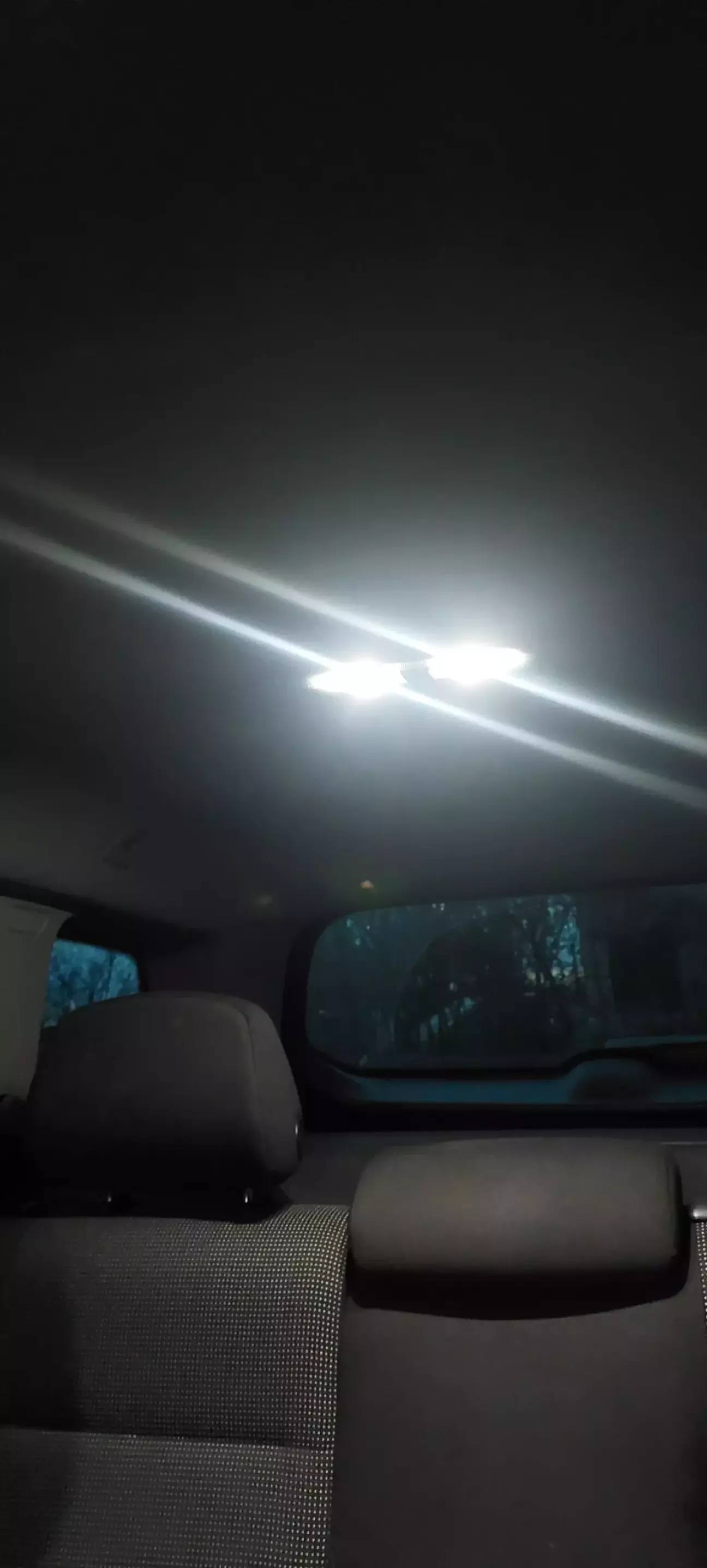 Давно хотел поменять лампочки освещения салона, но как всегда были причины: то забыл, то забил, то нет времени. В итоге сегодня выделил время и поехал на рынок. Там их приобрел и на месте сразу начал установку. С плафоном задних пассажиров, проблем не было. Поменял быстро. Но с передними были ,а точнее с тем чтобы извлечь лампочку для чтения переднего пассажира. Но минут 10 мучения и её извлёк. По итогу получился такой результат