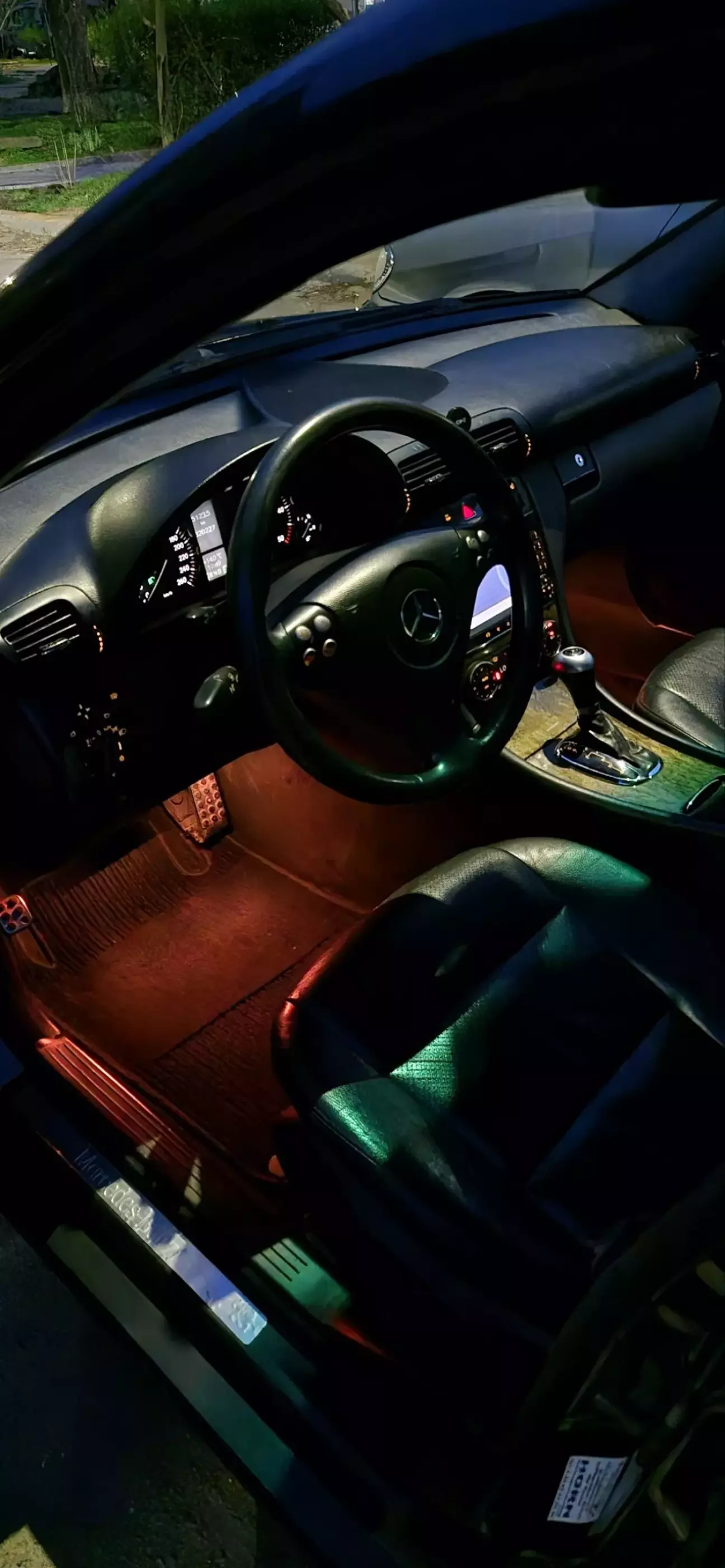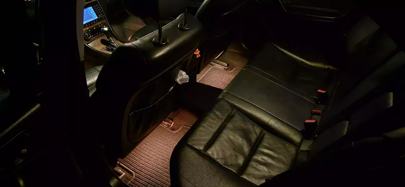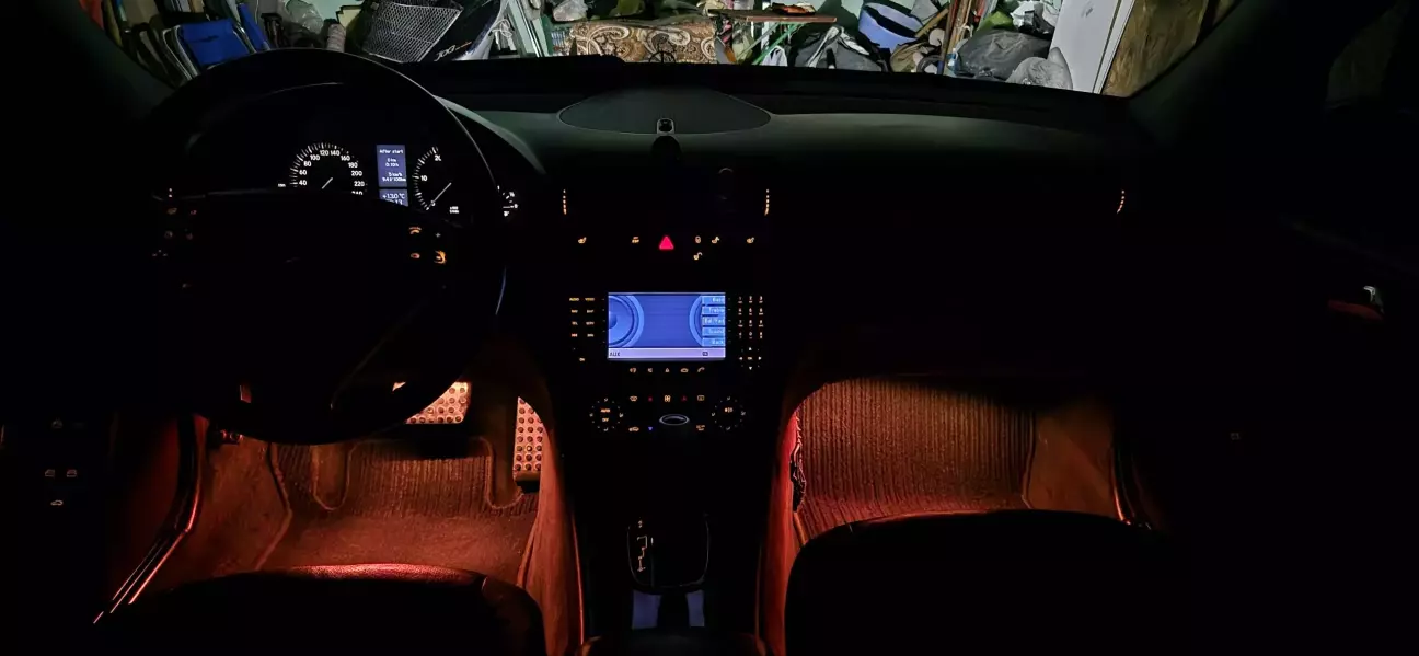 По задумці вона втикається в прикурювач але я відрізав це і під'єднав на підсвітку самого прикурювача. Також відновив його підсвітку та підсвітку попільнички, думав там перегоріла лампочка (як у всіх) але у мене просто був поганий контакт, піджав контакти і все запрацювало. Тобто підсвітка ніг в мене вмикається коли ввімкнені габарити, також так як вона підключена до штатної підсвітки, яскравість регулюється разом зі всією штатною підсвіткою з рідного регулятора. Колір підібрав також під штатну янтарну підсвітку але фото звісно це не передає. В очі не сліпить, просто додає затишку.