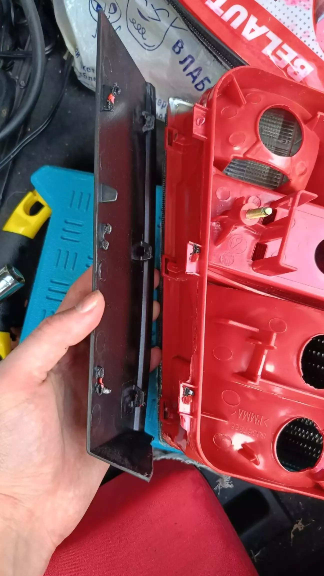 так виглядала одна фара( клеїв содою і клеем)