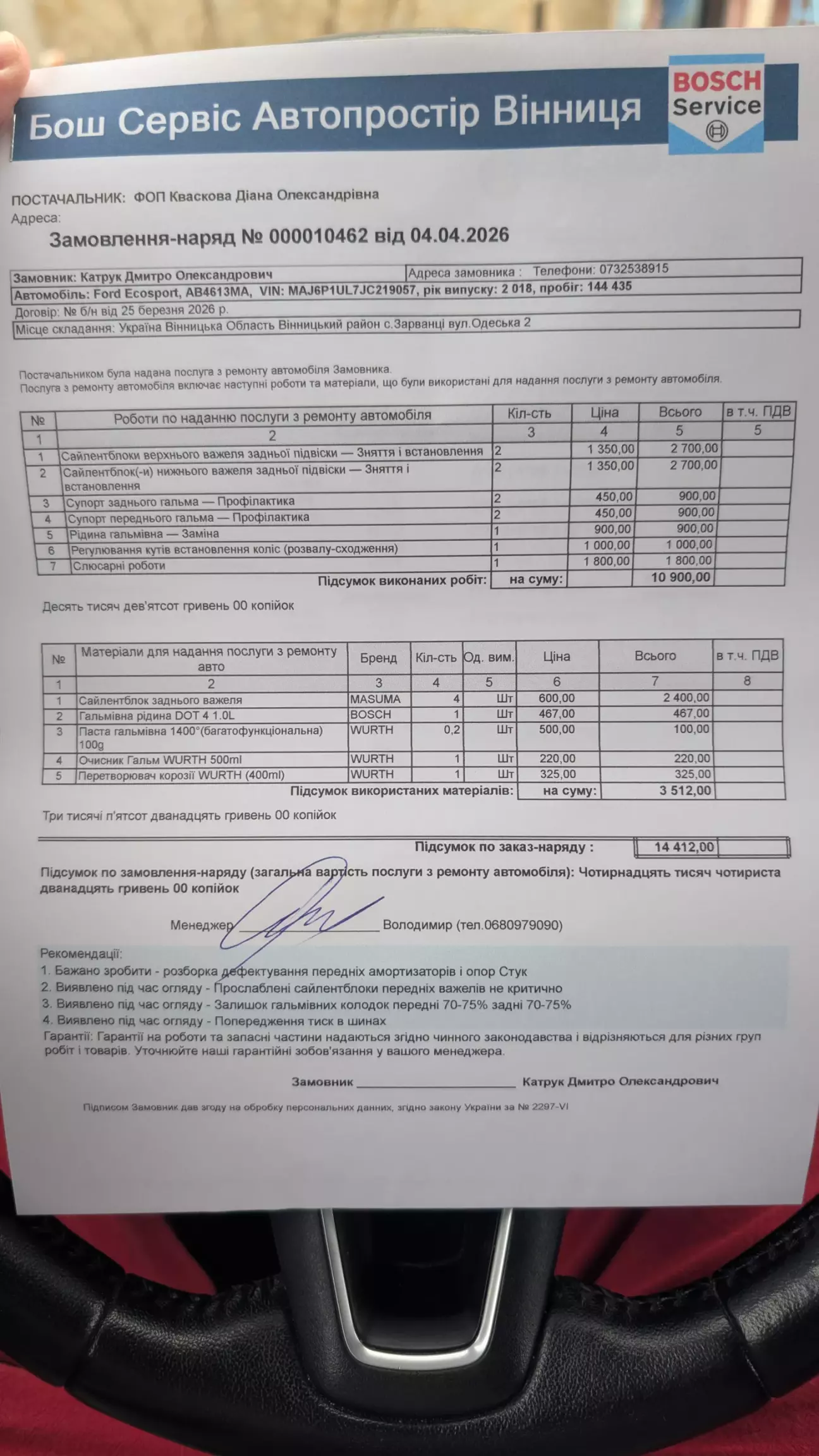 Після того як слюсарі добряче погрались віддали мені авто десь 17:30. Ну і звісно вердикт для кошелька: