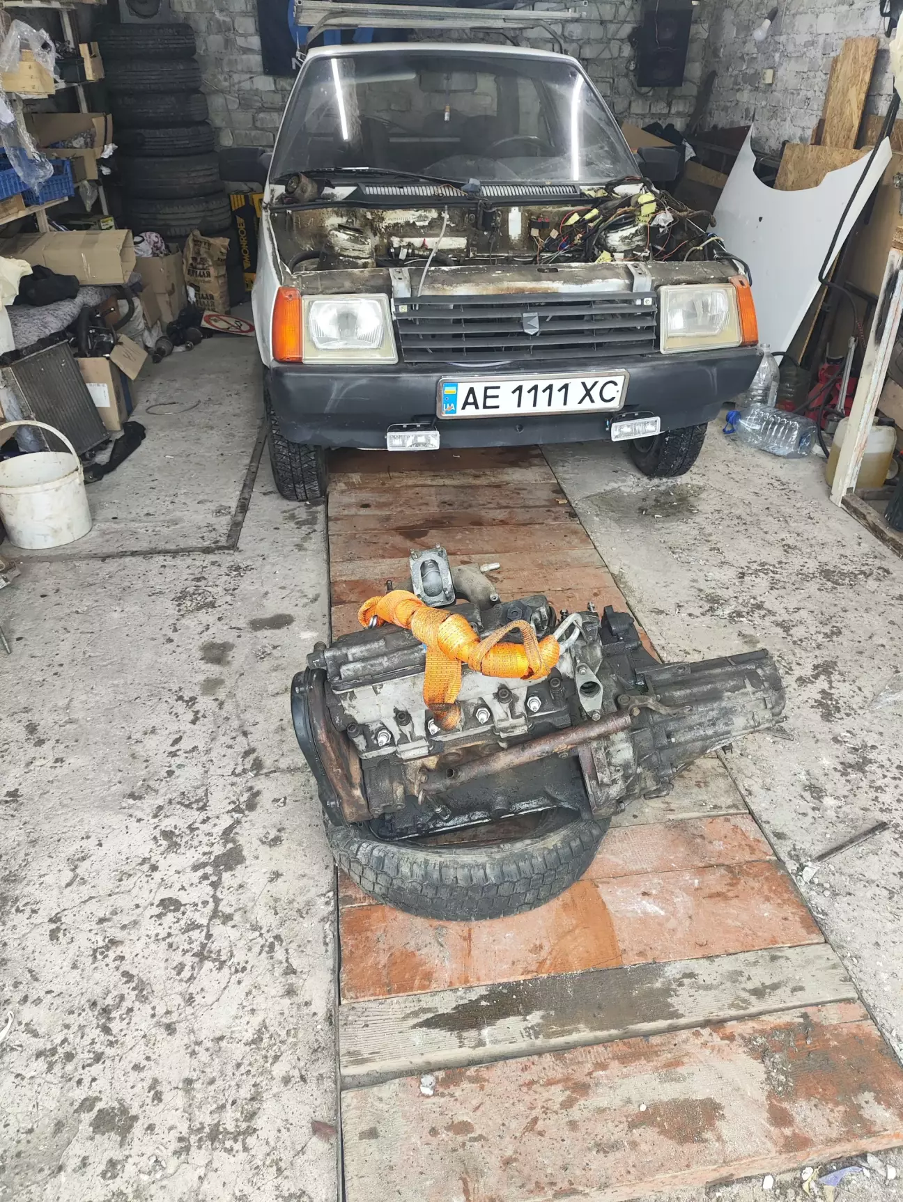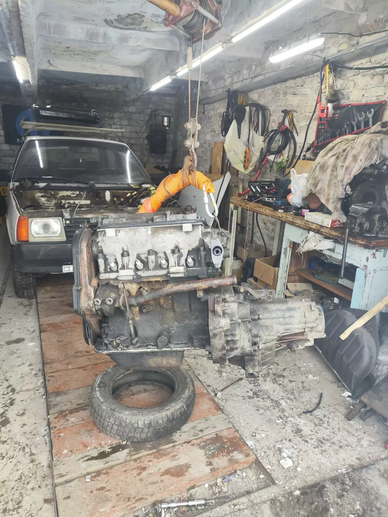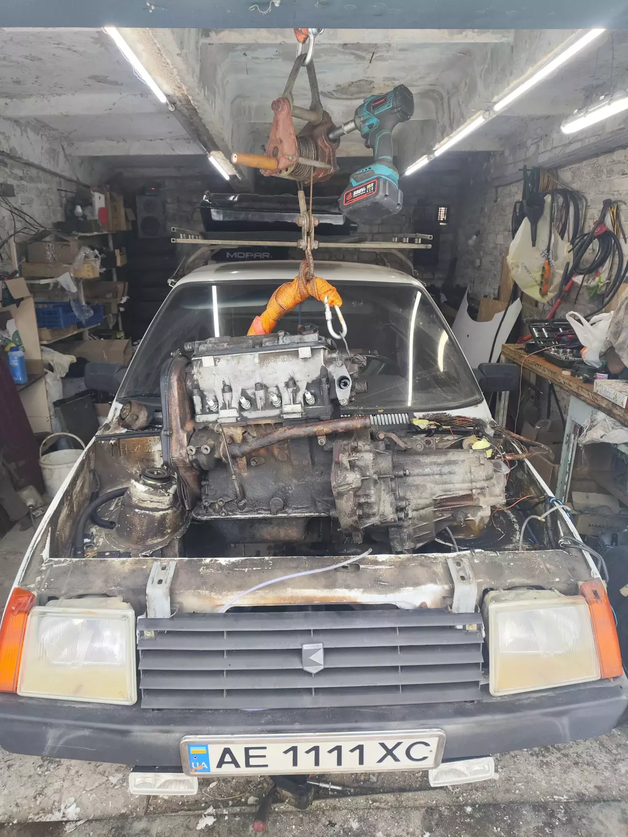 Десь пару днів в мене пішло щоб все познімати щоб вийманню КПП з двигуном нічого не мішало. Наш павертрейн вирішив витягувати через верх, так як в одне рило і так важко, але ось така штучка мені дуже допомогла, дукую за неї моєму товаришу і коллезі Михайлу.