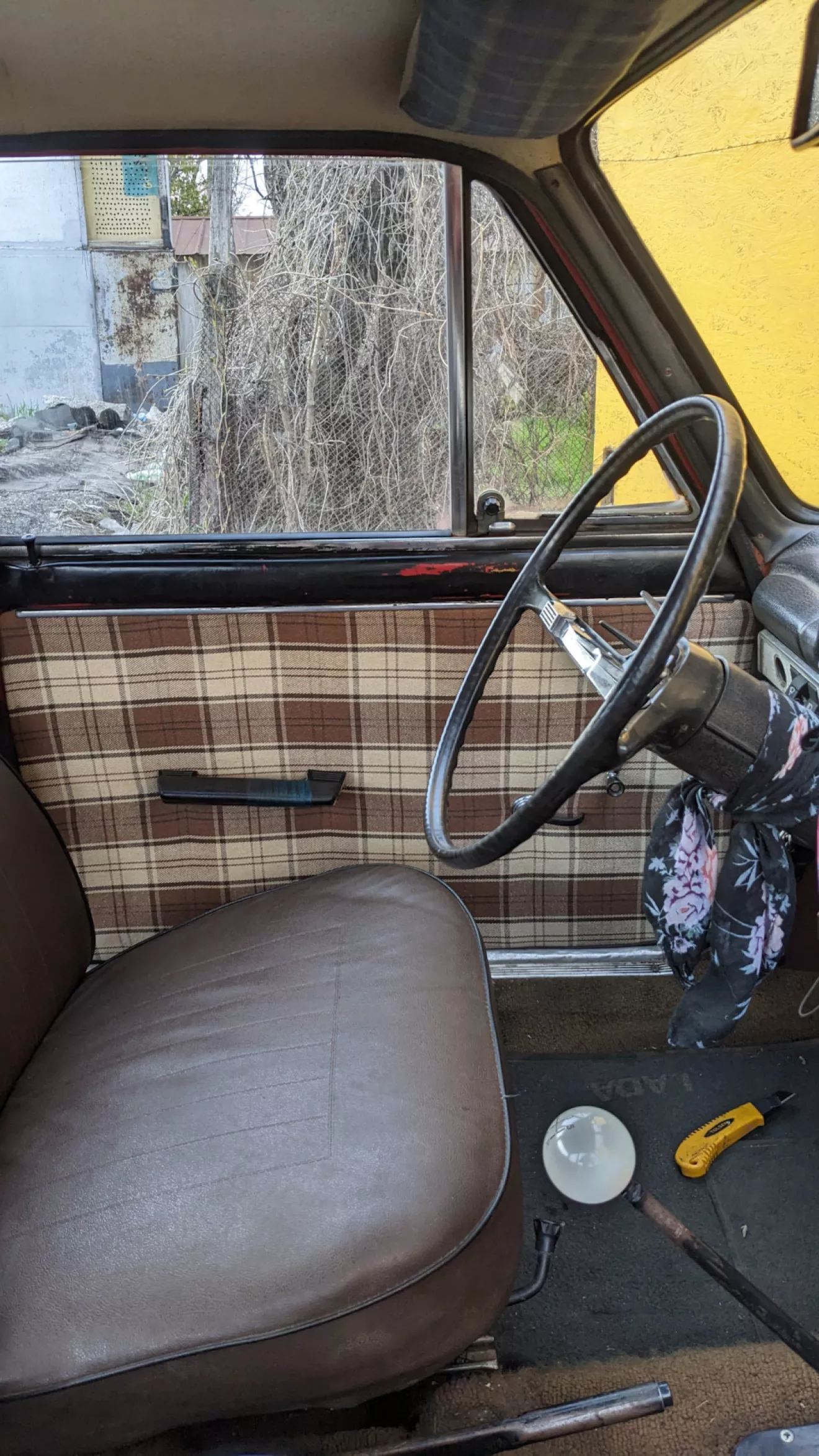 При покупке стояли ужасно перешитие в тряпку копеешные сиденья, с них вечно выпадала на пол кокосовая набивка, да и сидеть на них было мягко говоря так себе(. Наконец-то попал на большую разборку по тазам и забрал там два сиденья с запорожца с пробегом 50к км, ковролин с тройки и коричневые кикпанели. Единственное что товарищ дал мне две водительских, но об этом я узнал уже когда их ставил). Ковролин менял ибо прошлый был черный, а хотелось побольше бежевого ну и был он с семёрки, соответственно везде короткий. Чтобы прижать его металлическими накладками на пороги — приходилось его очень сильно натягивать. Всё поставил, смотрится огонь, но дверные карты…😁
