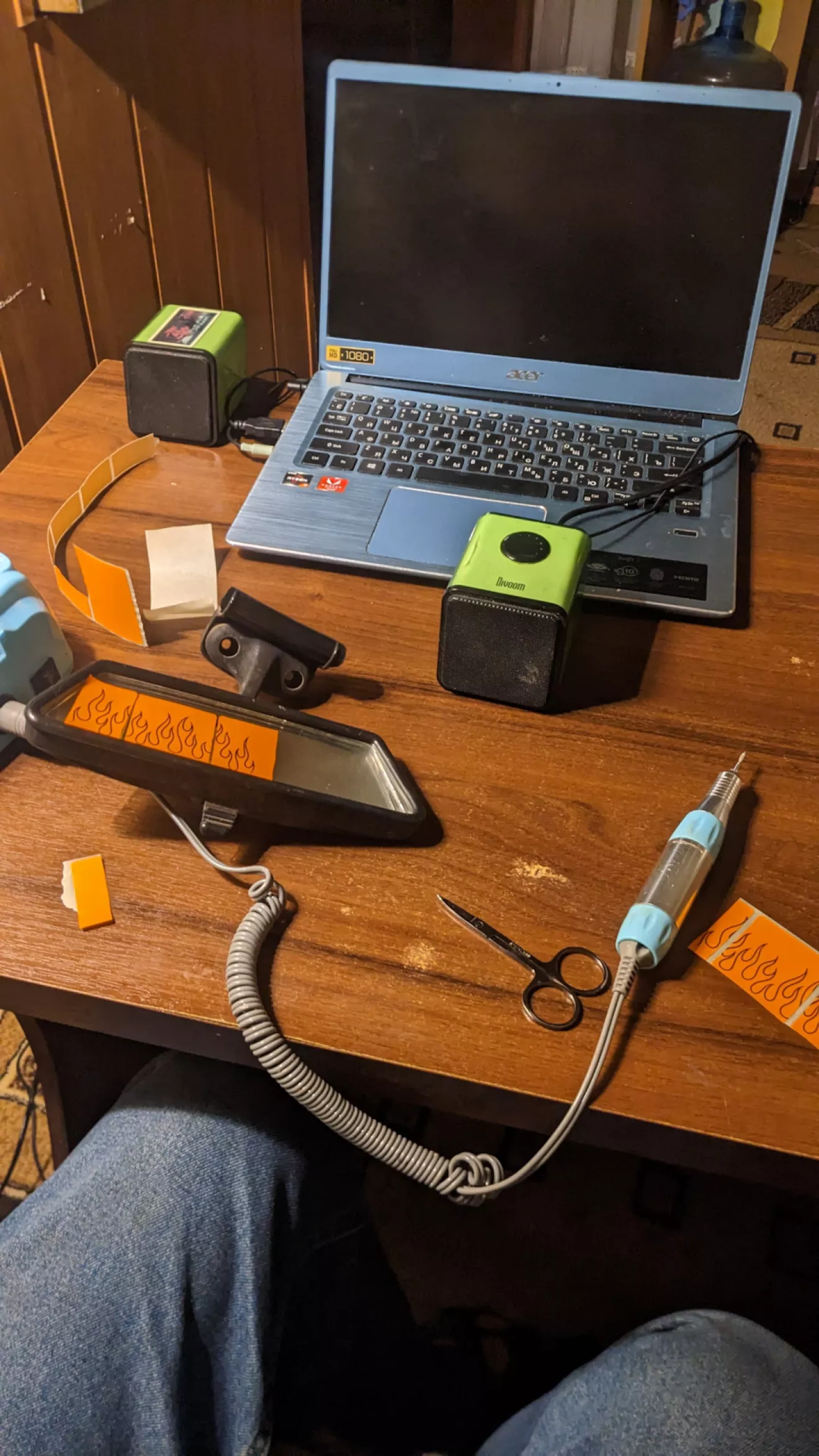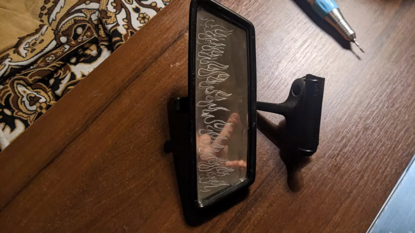 Продолжаем делать стиль из копейки) Снял салонное зеркало, отмыл и по трафарету из наклеек гравером для ногтей сделать огоньки. На удивление заняло это минут 15 времени и обзору не мешает, хотя дело наверное каждого.