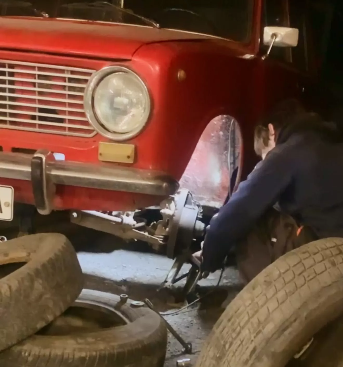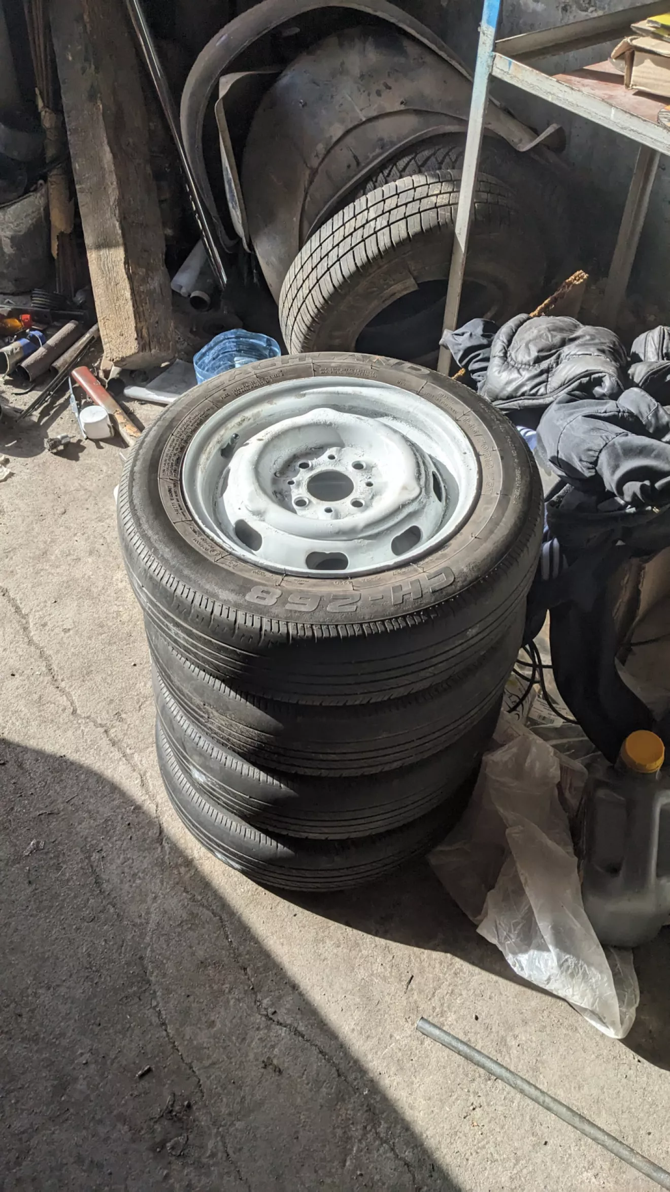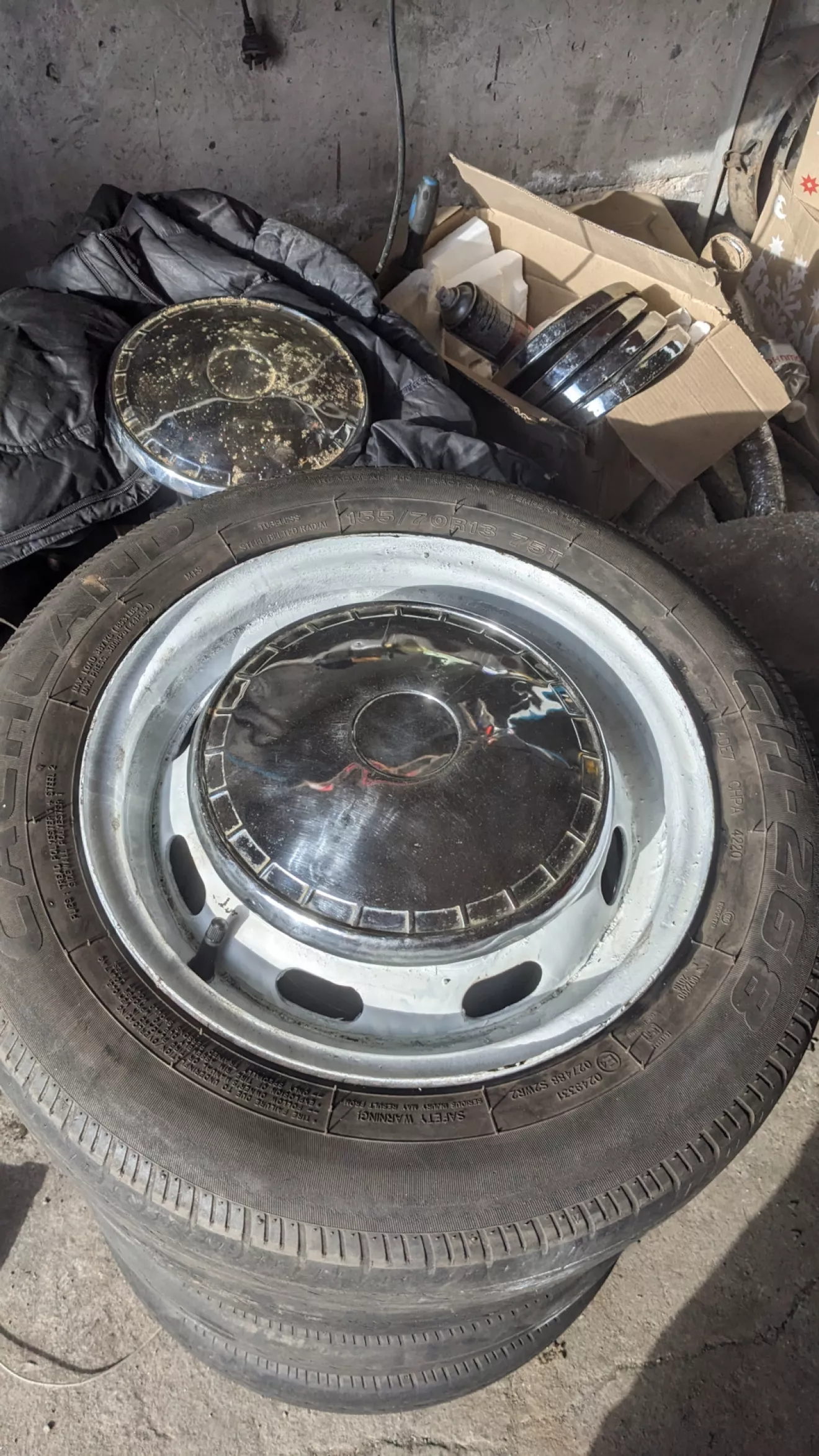 В целом изначально хотел классические 13 железные колёса с ушами под хром колпак. Начал бегать по знакомым, один подогнал два штампа которые пылились в гараже, за что ему огромное спасибо. Ещё один обнаружил в багажнике на запаске и ещё один взял на разборке. Колёса выложил, те что были со старой краской — залил смывкой и все 4 колеса начал терять болгаркой с бабой Ягой) Задул просто белым балоном в ≈3 слоя. Первые слои плохо ложились из-за того что кэп на балоне был никудышный, но более менее вытянуть смог. Далее нашел узкую резину 155/70 и поехал забрал, так как по городу чуть ли не единственное объявление с б/у 13 резиной. Диски подсохли, поехал на шинку обуваться, сначала товарищи мне позвонили и сказали что 3 колеса под камеру) Я уже расстроился, так как поблизости камер не нашёл да и не хотел влипать на дополнительные затраты. В итоге другой паренёк спокойно обул все колёса без камер).