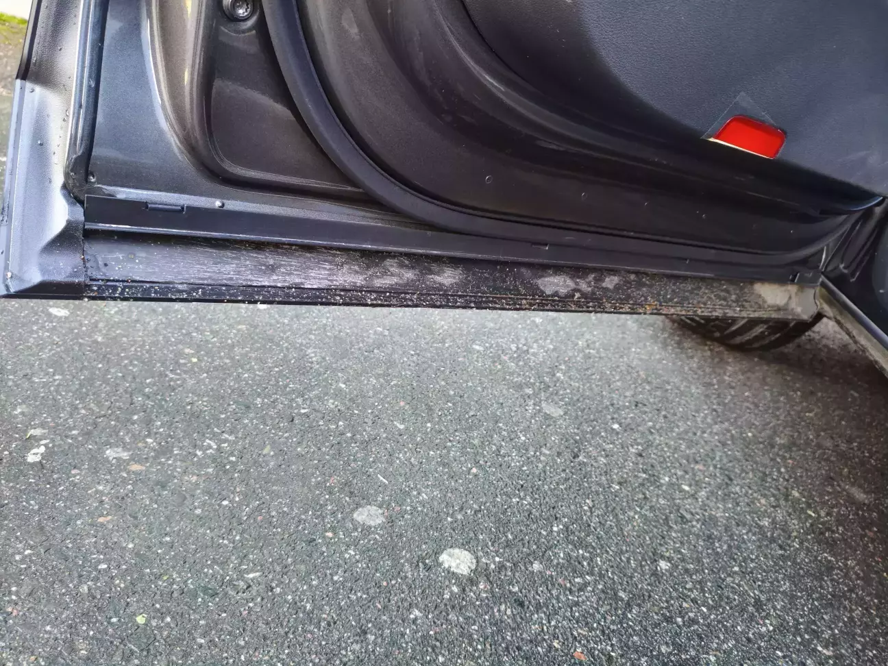 Так ця накладка має захищати проєм дверей щоб ваші штани були чисті як вилазиш або залазиш не більше і не менше і вона справляється з цим . Її не потрібно захищати . Там дренажні на дверях якщо перекрити знизу ущільнювачами то буде волога довше з всім витікаючим. як по мені то нічого там колхозити.
