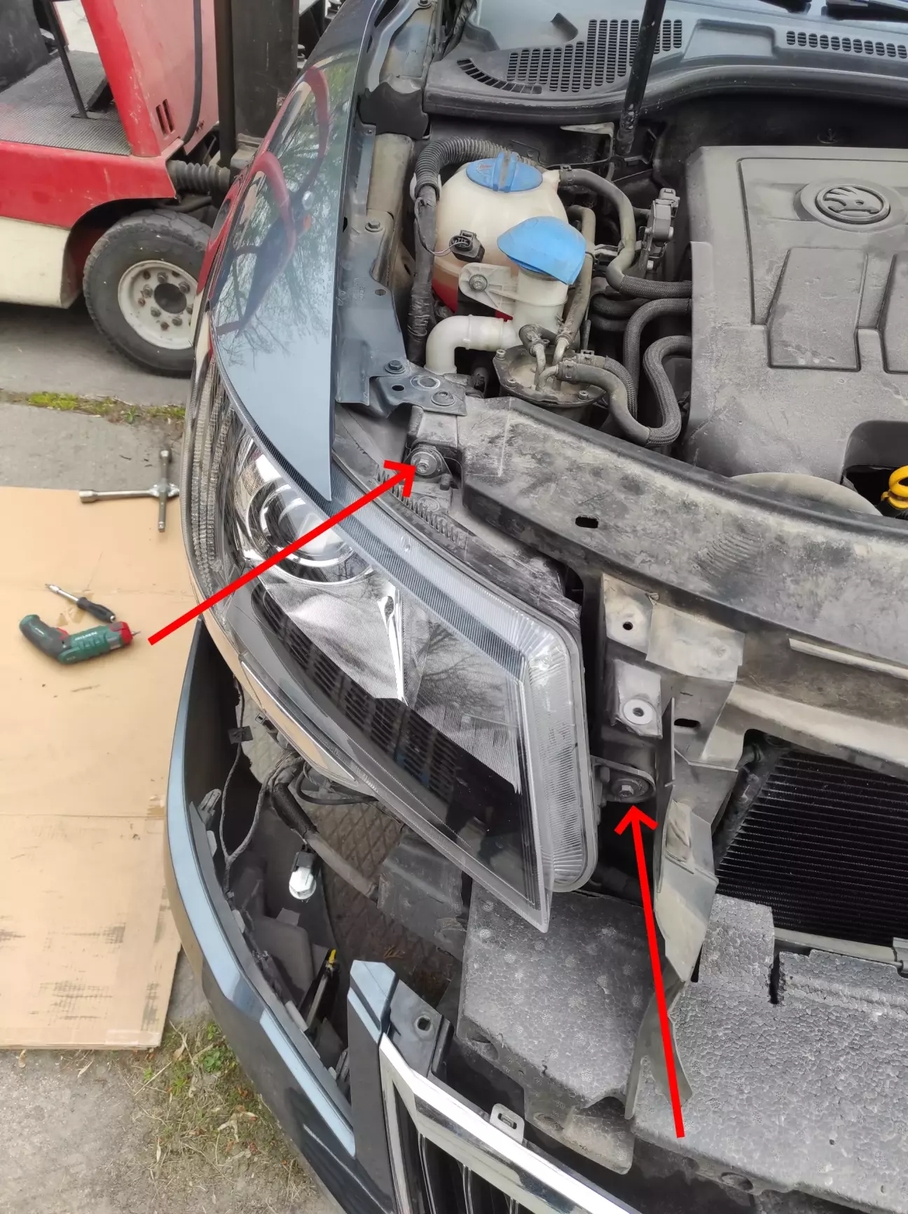 Ну а далі все просто.... де та шия інженерів Шкода, вона мене так і манить? Відкручуємо три болтика і фара в руках