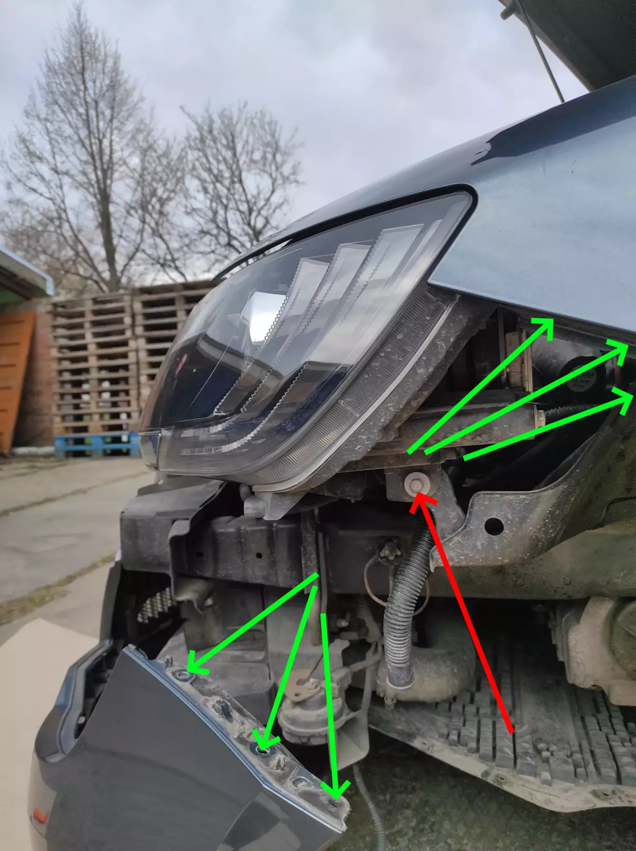 Ну а далі бампер. Відкручуємо з обох сторін від крила - там з кожної сторони два болтика і один пістон енвилимка :)