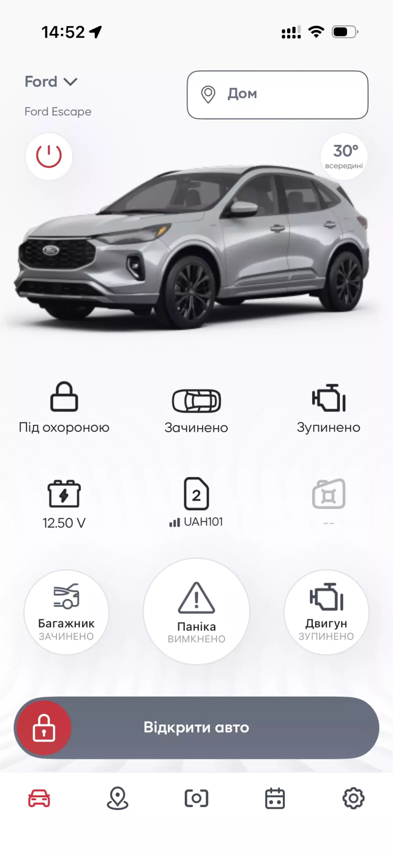- постановка зняття з охорони відбувається штатними методами (брелок Ford, ручки дверей) та через мітку або додаток в телефоні.