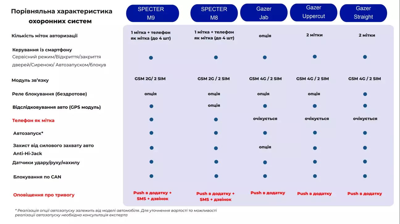 - робота в мережі - 2G у Specter, 4G у Gazer - важливо, якщо авто має поїхати до Європи, наприклад, в Німеччині 2G всьо;
