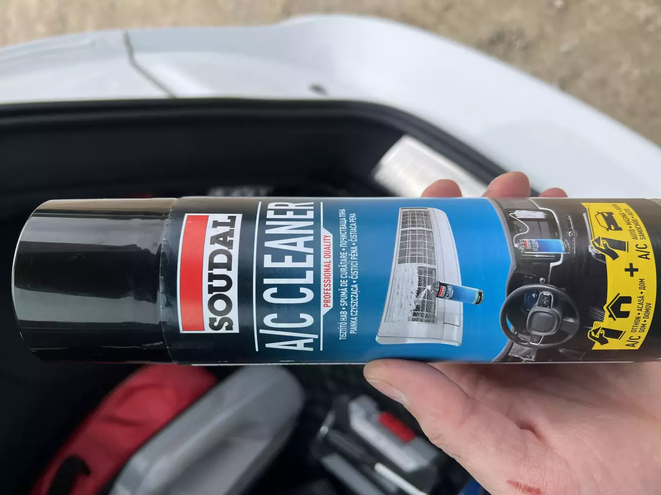 Планове обслуговування системи кондиціонування, кожного року перед літом роблю щоб виключити можливість розповсюдження грибка та плесі . Робив як завжди - просто з сторони пасажира зняв накладку бокову знизу під бардачком ,- винув старий фільтр салону - відігнув край ковроліну , стягнув гумовий шланг зливу конденсату та через нього забув біль меньш пів балону , надів той шланг на місце та остатки балону вибув у дефлектори салону . Почекав пів години , як по інструкції та перевів систему кліматіка у режим рецеркуляції та на обігрів , відкрив вікна та дав поробити на максимум облува десь хвилин 5-7 , все чисто . Встановив новий фільтр .