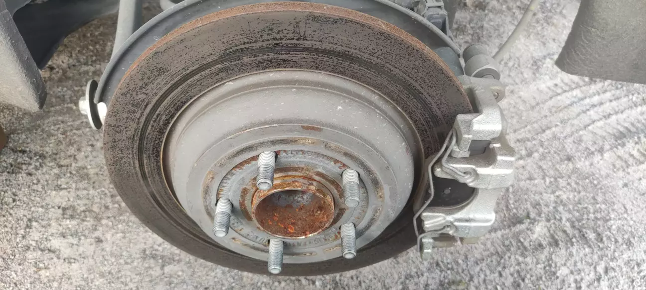 Задні гальма вже прямо просили уваги — диски втомлені, колодки теж явно не першої свіжості.