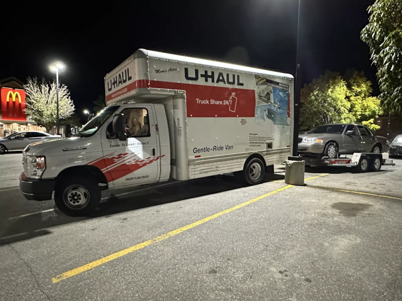 После того как горы и виды были посмотрены, Санта-фе сдан в аэропорт а я наконец поспал больше 6 часов — наступило время обратной дороги. С U-haul подтвердили что грузовик и прицеп в нужный день будут, но придется грузовик забрать с одной локации а прицеп с другой, с жилого района. Я не то чтобы особенно уверенный водитель, особенно в таком загруженном городе, но тут не до выбора — все буду пробовать на ходу. Получили 15-футовый фургон Ford E450 (хеви-дьюти Эконолайн со спаренными колесами на заднем мосту) — более мелкий Шван не дали т.к ему типа не хватит мощности) хотя думаю они не сильно ошибались, как оказалось потом. Машина бензиновая с крупной версией нынешнего фордовского V8 c дизельным объёмом 7,3 литра. При этом она звучит невероятно похоже на дизель — на заправке пришлось даже открывать капот и убедиться, точно ли не дизель лол. При буксировке прицепа нужно обязательно ехать без овердрайва.