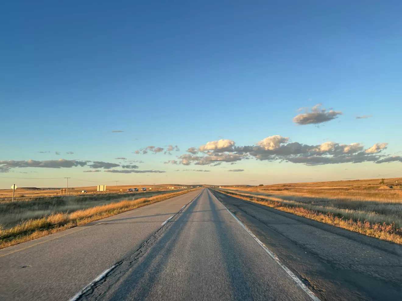 Дальше шли уже спокойно, стараясь держать расходомер в серединке и обороты выше 2,000 об/мин не раскручивать. Держалась безоблачная красивая погода, ближе к вечеру уже в степях Саскачевана небо окрасилось в лиловый цвет и день потихоньку догорел. Это была даже не середина пути)