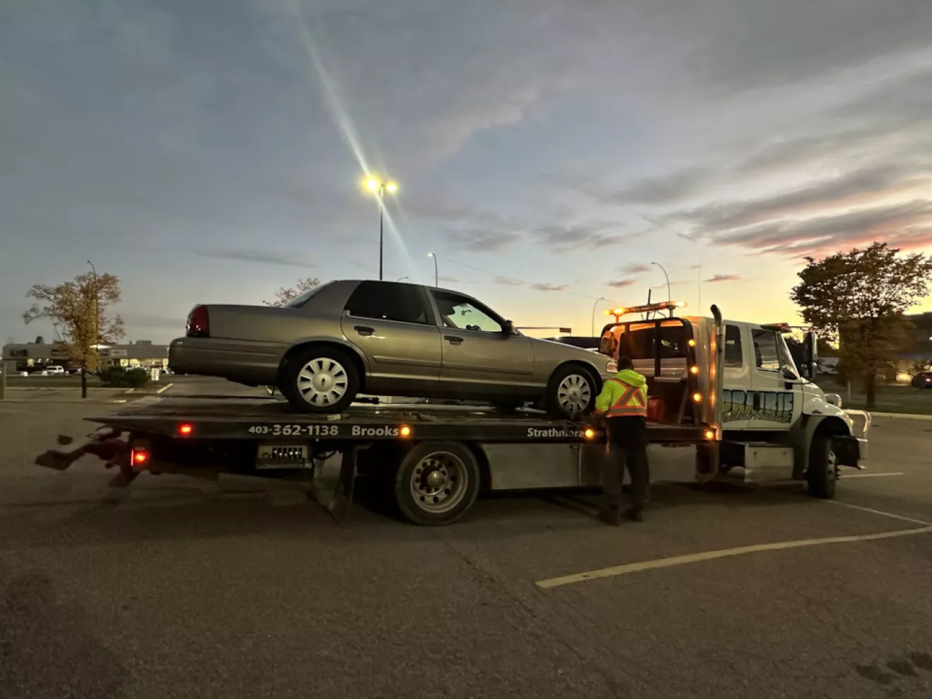 Как ни крути — машина в нокауте, так что в данный момент надо думать как доехать до Калгари, что делать дальше и как вернуться домой. Машина преодолела около 1200 км. После 2-часового гугления, звонков и переписок, был выработан план — до гостиницы доехать на эвакуаторе по страховке от Канадской Автомобильной Ассоциации (которую заранее конечно не сделали), туризм не отменять и все сделать на арендованной машине, домой вернуться на арендованном в один конец грузовике U-haul с викой на прицепе. Чинить и разбираться буду уже дома, без спешки и бесплатно. Стоимость поездки начала сильно дорожать, но все-таки с планом живется уже гораздо легче, так что завершив все бронировать, мы просто сели ждать. Через 10 минут подъехал эвакуатор Интернешнл с полной погрузкой, загрузил нас и под самый закат мы доехали до гостиницы в Калгари.