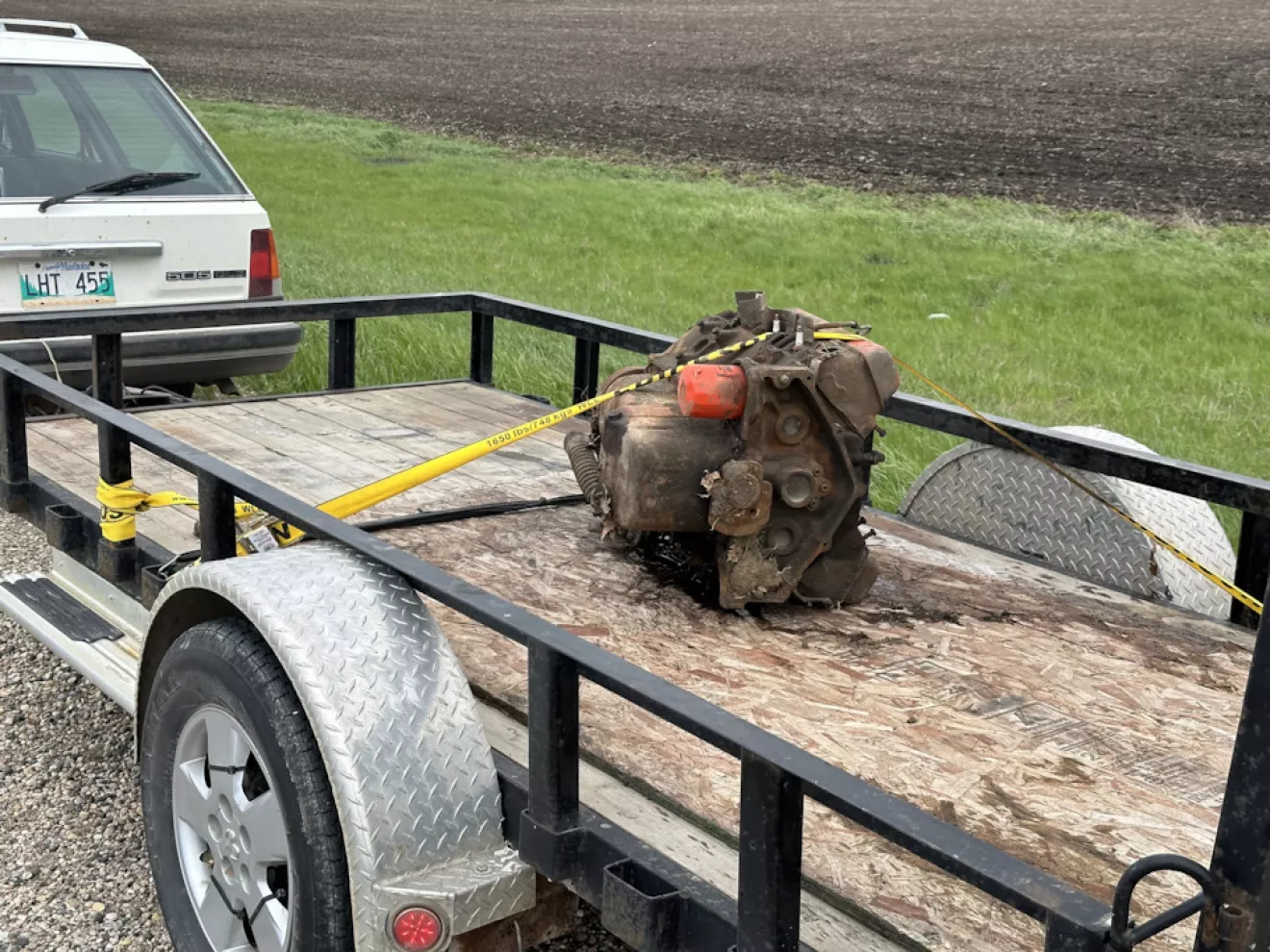 Сейчас проходят длинные выходные (+1 выходной), и звезды наконец сложились для того чтобы привезти две давно ждущие вещи. Первая — купленный очень дешево самодельный кран-гусь для двигателей. Вторая — 327й движок от импалы, который надо попробовать собрать.