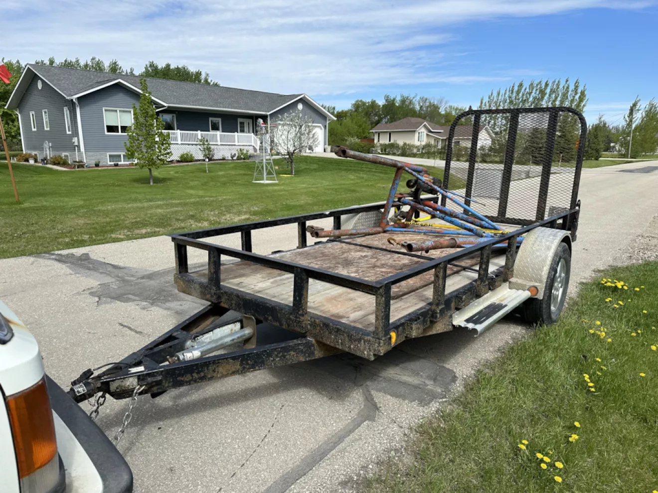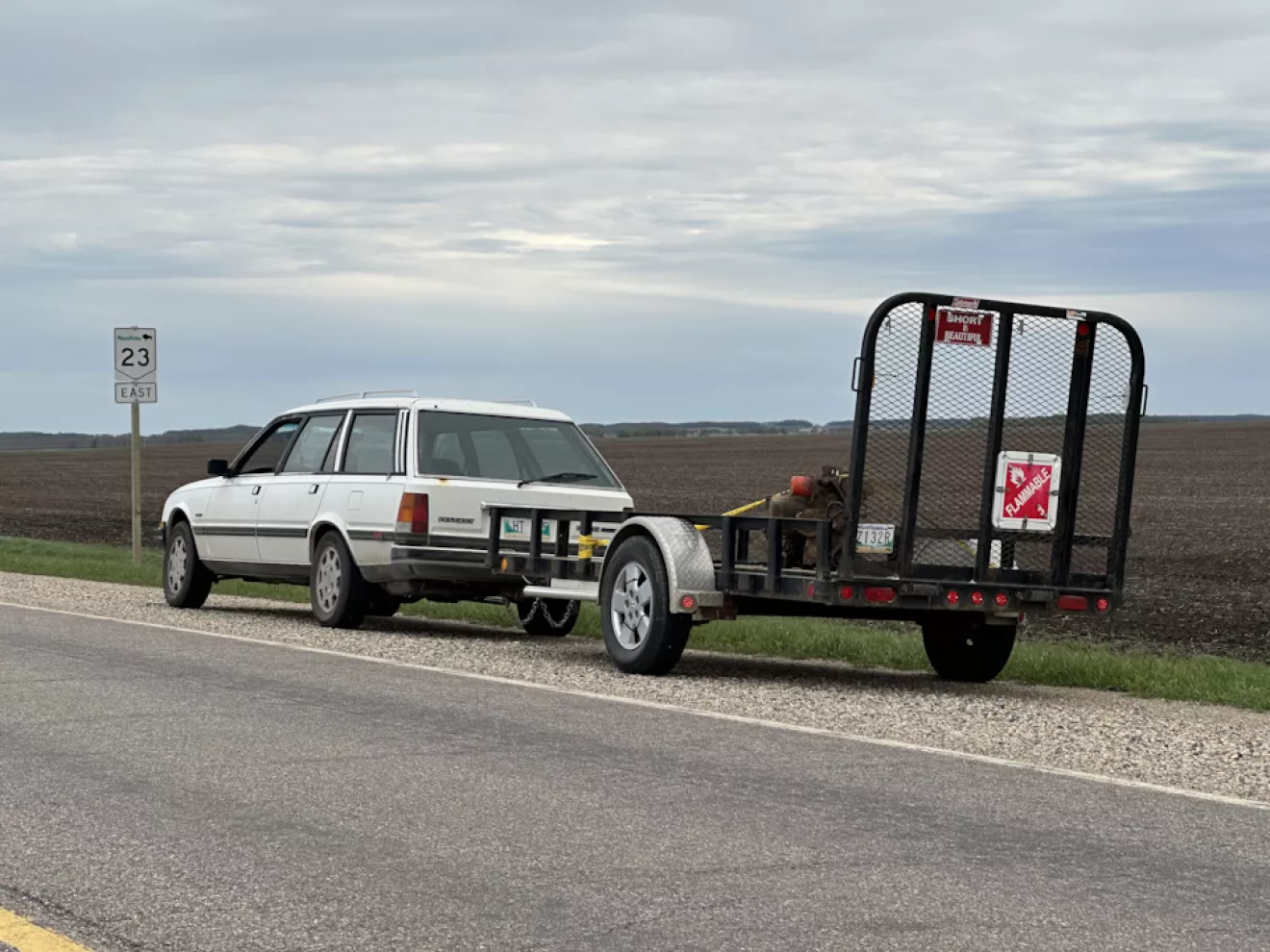 Пежо ранее был оборудован для буксировки, и не с завода — старый хозяин приварил трубы нужного размера для фаркопа к лонжерону. Далее был найден трейлер в аренду за 25 долларов в день, фаркоп дали там же, теперь можно ехать.