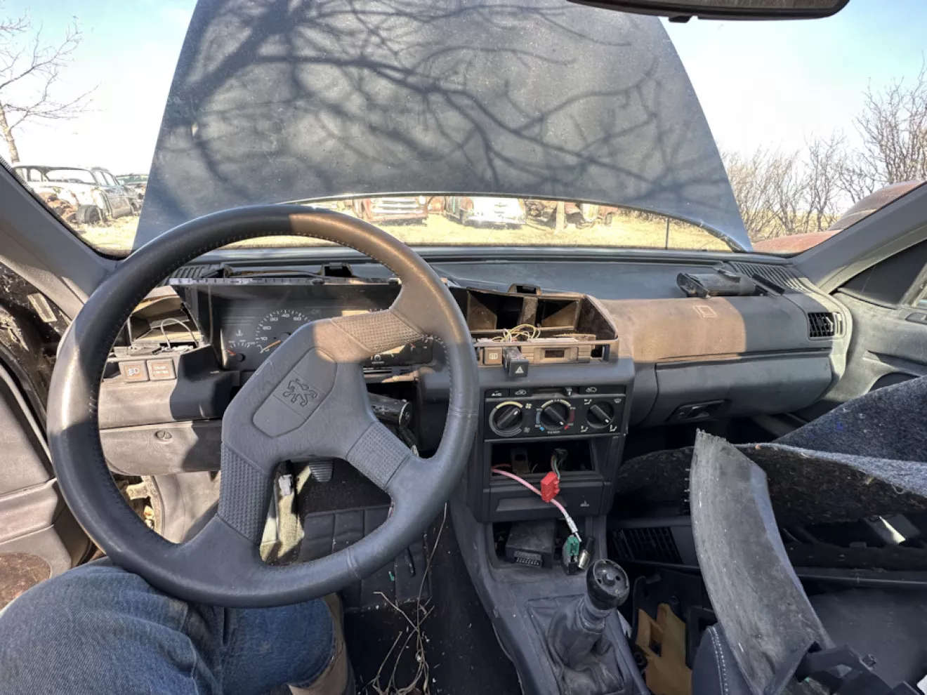 Перед самым уходом Пежо из Северной Америки в продаже оставались лишь две модели — 405 и 505. Первая, как можно догадаться по числу, меньше размером. Для меня ранее машина такая же неизвестная как 505, поэтому было интересно увидеть эту штуку. среди поля с кучей разных автомобилей, я наткнулся на совершенно неприметный, скучный седан — это был черный 405й. Как позже оказалось, и старый хозяин был тот же, что у моего 505го. Если верить картинкам с инета, то тут стоит Mi16 и 5-скоростная коробка (вроде «тот что нужно» мотор?). Вкупе с полным оснащением салона и кожаными сиденьями, кажется что это точно не базовая версия. 405 в сравнении с 505ым ощущается сильно иначе — сиденья стоят низко, хорошо видео углы кузова, посадка както располагает к агрессивной езде. В 505ом нет ничего из этого — там все наоборот для удобства, неспешный двигатель, комфортные сиденья, относительно просторно внутри, и все более архаично.