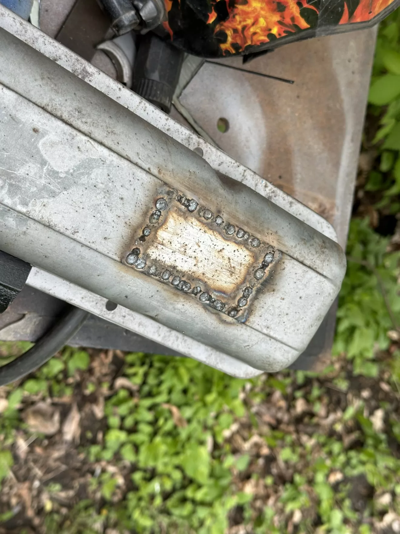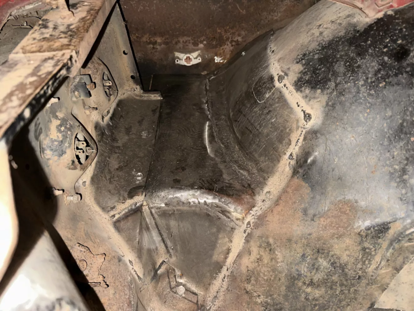Здесь я не разбрасывался временем и активно применял технологию — сбить рыхлую ржавчину, протереть, грунт-преобразователь, грунт и черная краска. Получилась такая морда. Думаю не займет слишком долго чтобы это начало постепенно слетать и ржаветь, но по моему замыслу это будет происходить параллельно всему другому что я покрасил и в какой-то момент все будет выглядеть гармонично и как на обычной пожилой машине.