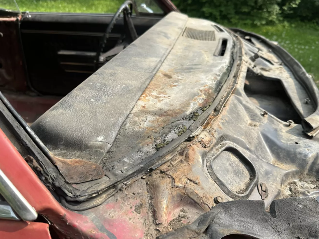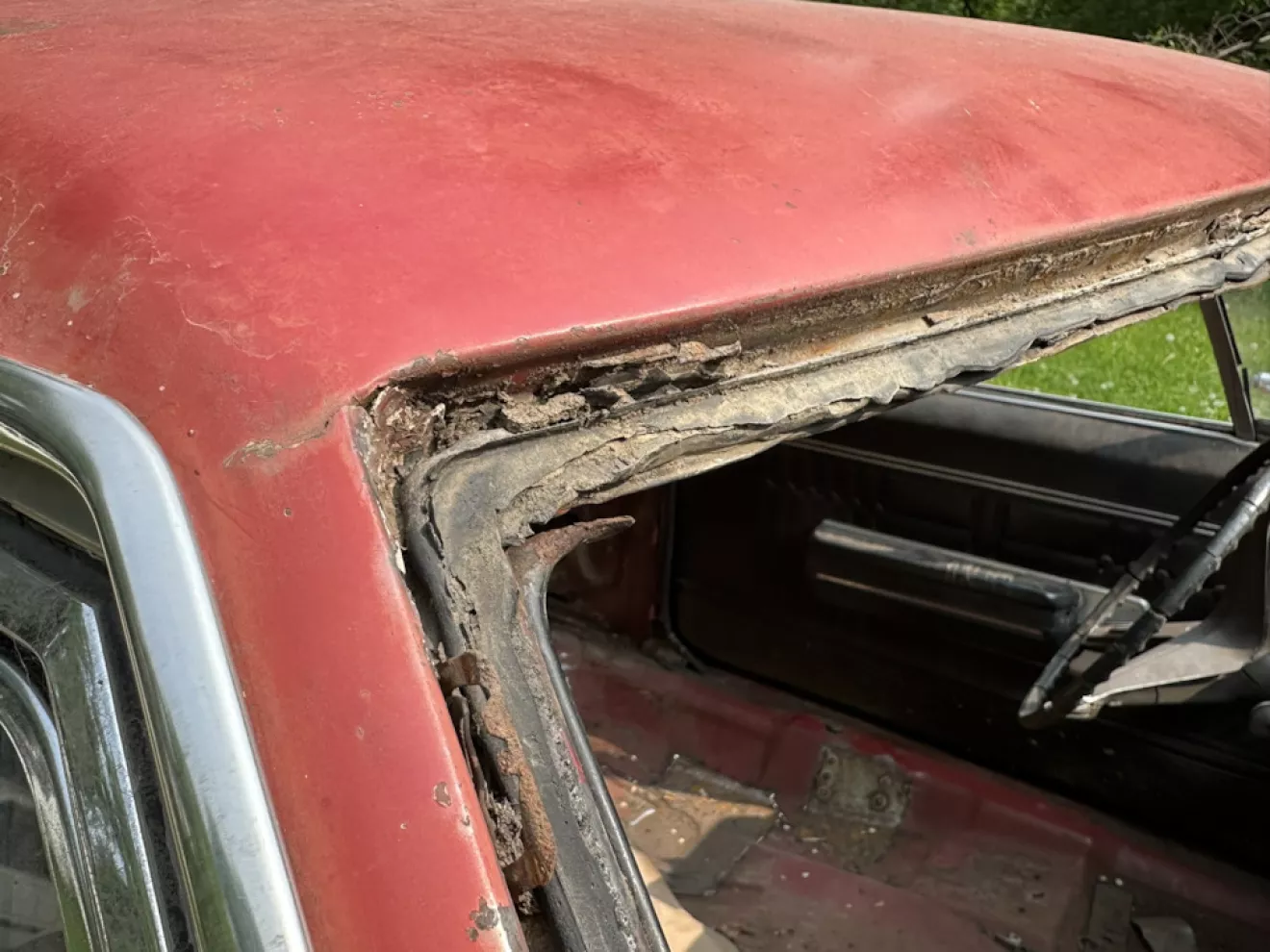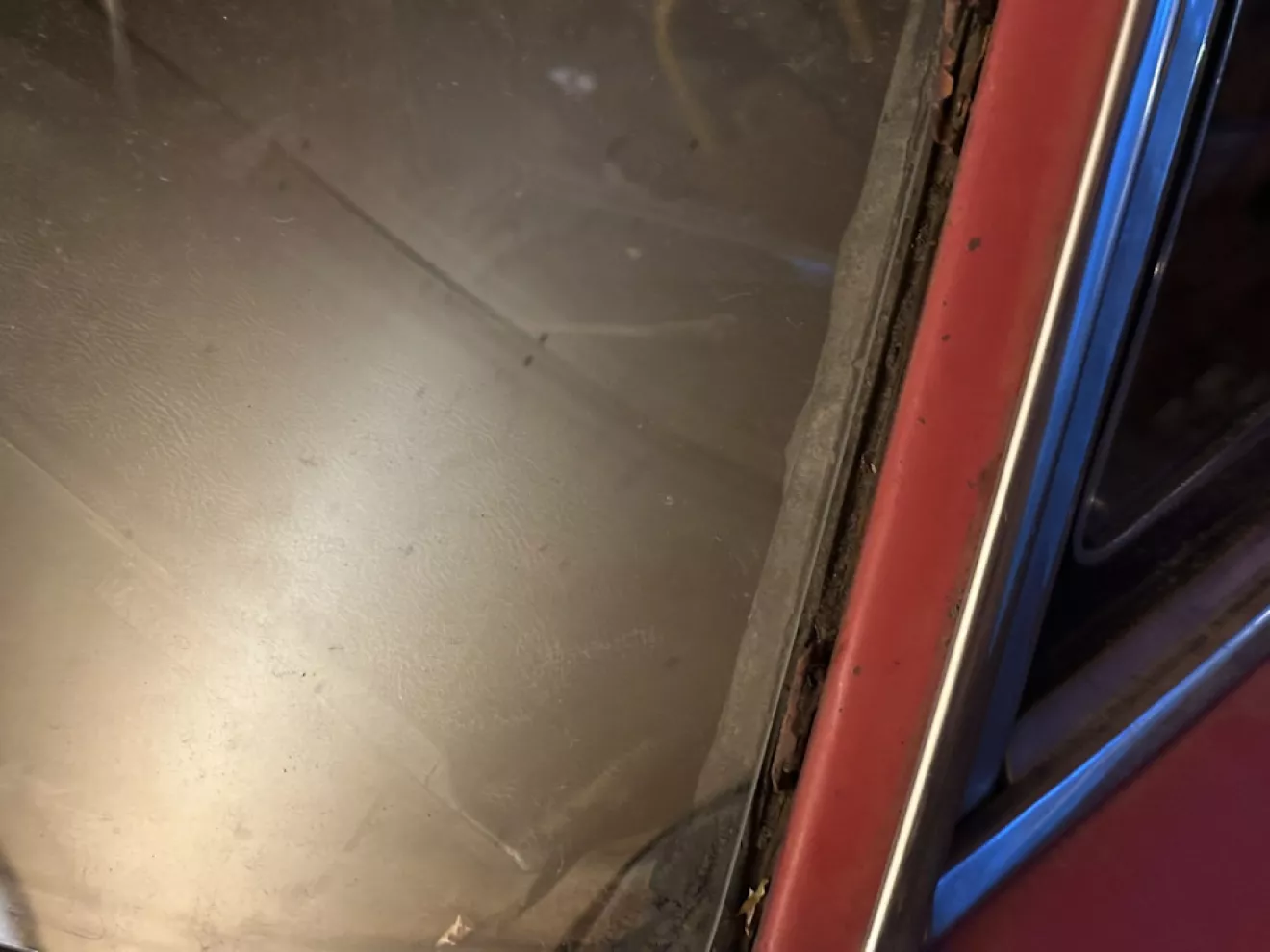 Как-то с коллегой обсуждали снятие стекол на этих машинах. На Импалах с этого поколения (с 65 года и далее) лобовое стекло вклеиваемое — прогрессивно, прикольно, удобно менять. Но нюанс тоже есть — в те годы вероятно еще не делали хороший уретановый герметик, поэтому стекла клеются на бутиловую ленту. Это легко, чисто, но клеится нууу так себе. Такое стекло, особенно после многих лет, можно просто выдавить — особенно под жарким солнцем. Такой день был недавно у меня и я решил в конце дня испытать это в деле. Надавил плечом изнутри, и тут же все молдинги вылетели со звоном, лол. Стекло, в-общем уже давно практически отклеилось и по сути его держали только сьемные молдинги.