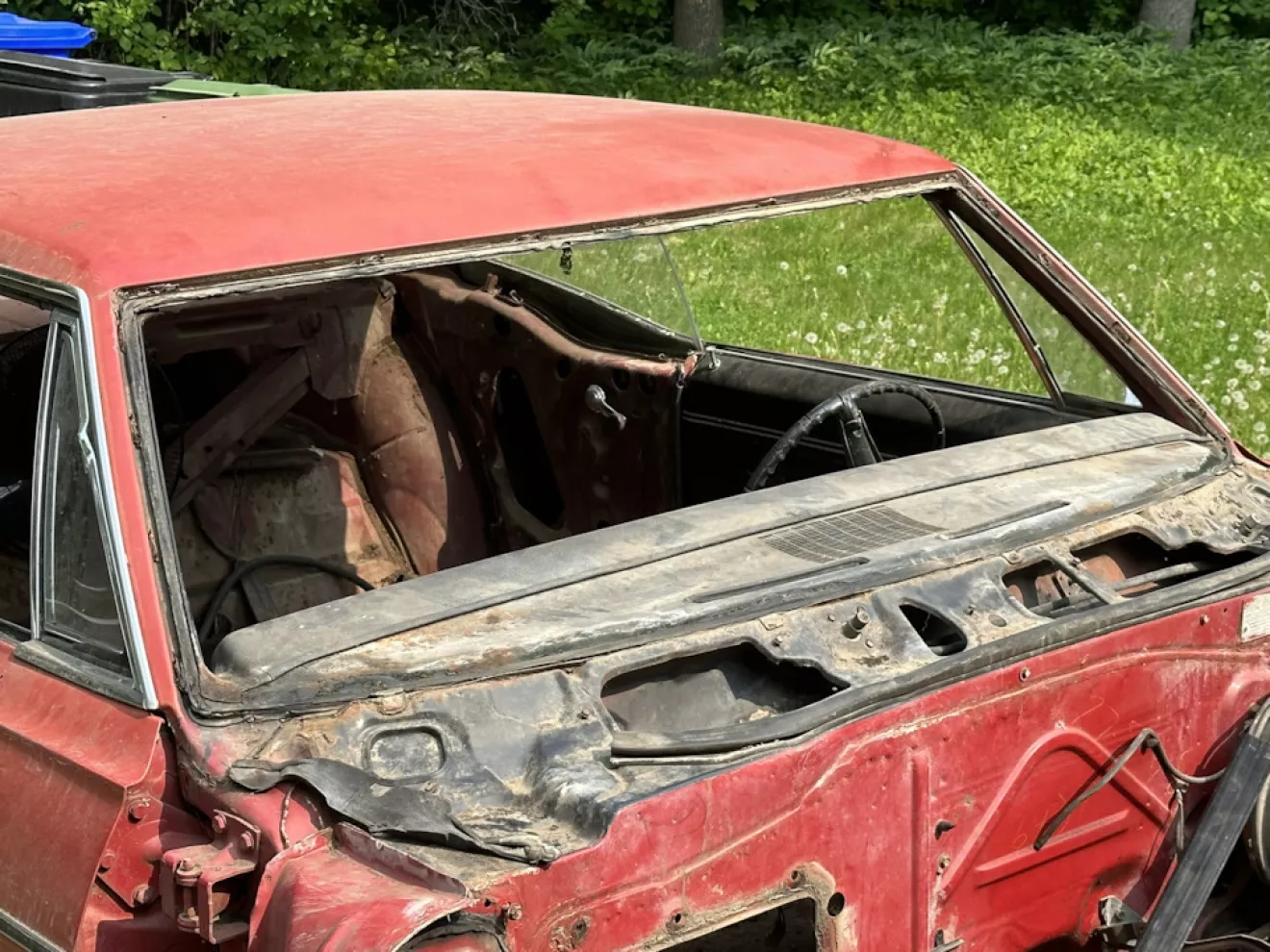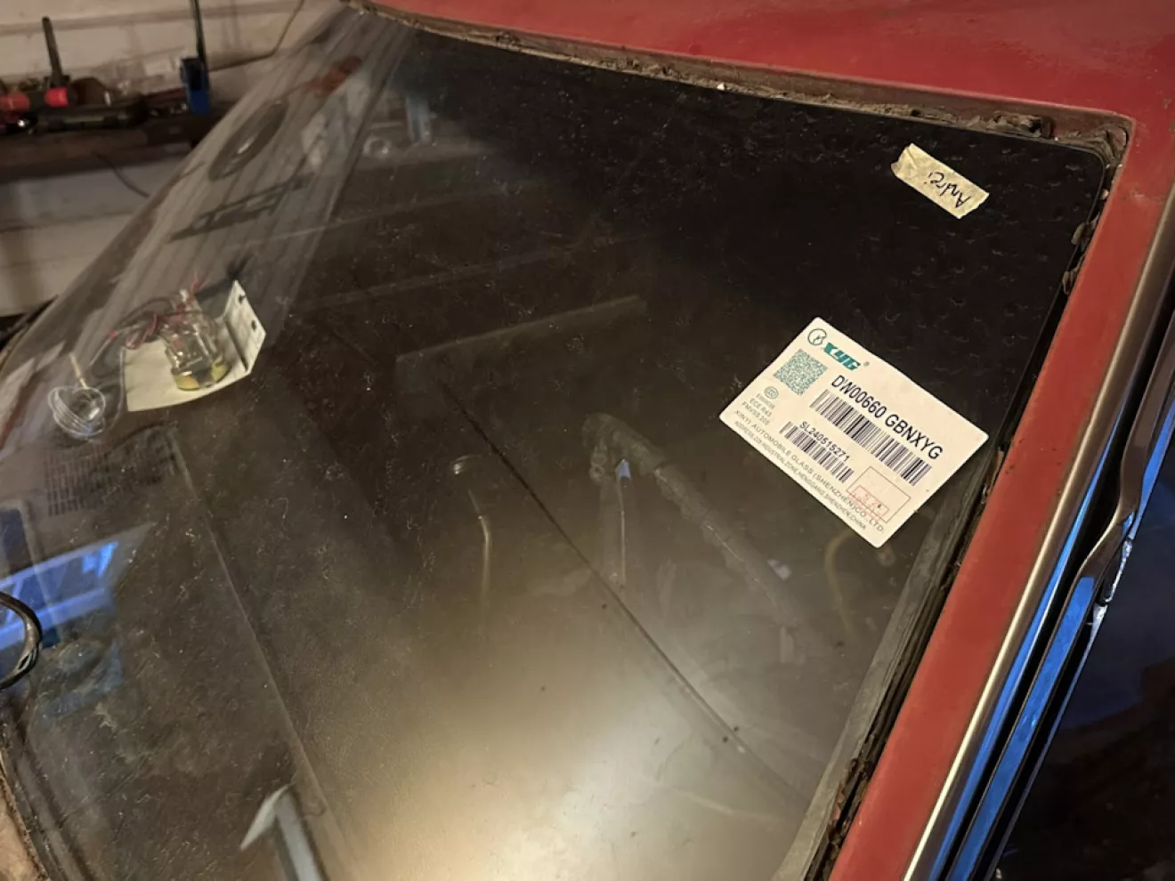 Под замутневшим старым стеклом (там стоял толстенный тяжеленный триплекс, у которого стеклянные части отклеились от пленки в середине) обнаружил поржавевшую железную верхушку торпеды и вроде еще живые проемы — все это придется почистить, покрасить сперва. Между делом заказал новую лобовуху с работы, через компанию которая нам привозит все стекла на машины. Человек приезжает дважды в неделю, привозит стекла, герметики, грунтовку и все принадлежности — и мое стекло там не просто было, оно было в наличии в ближайшем филиале и я получил его уже на следующий день лол. Такое стекло шло на все полноразмерники GM в 1965-70гг. Стекло обошлось в порядка 220 долларов, включая налоги + взял 2 тубы герметика там же. Правда теперь ожидает небольшой квест — поскольку наклеить стекло на бутил не требует никакой дополнительной подготовки, стекло не рассчитано под применение герметика. Нет черной полосы по краям, а само стекло очень неглубоко заходит на проем. То есть, придется наносить герметик прямо на стекло и наносить очень точно и тонко. А перед этим сделать полосу по краям. Если все сделать максимально красиво и аккуратно, то хром молдинги прикроют все это. Надеюсь все будет норм)