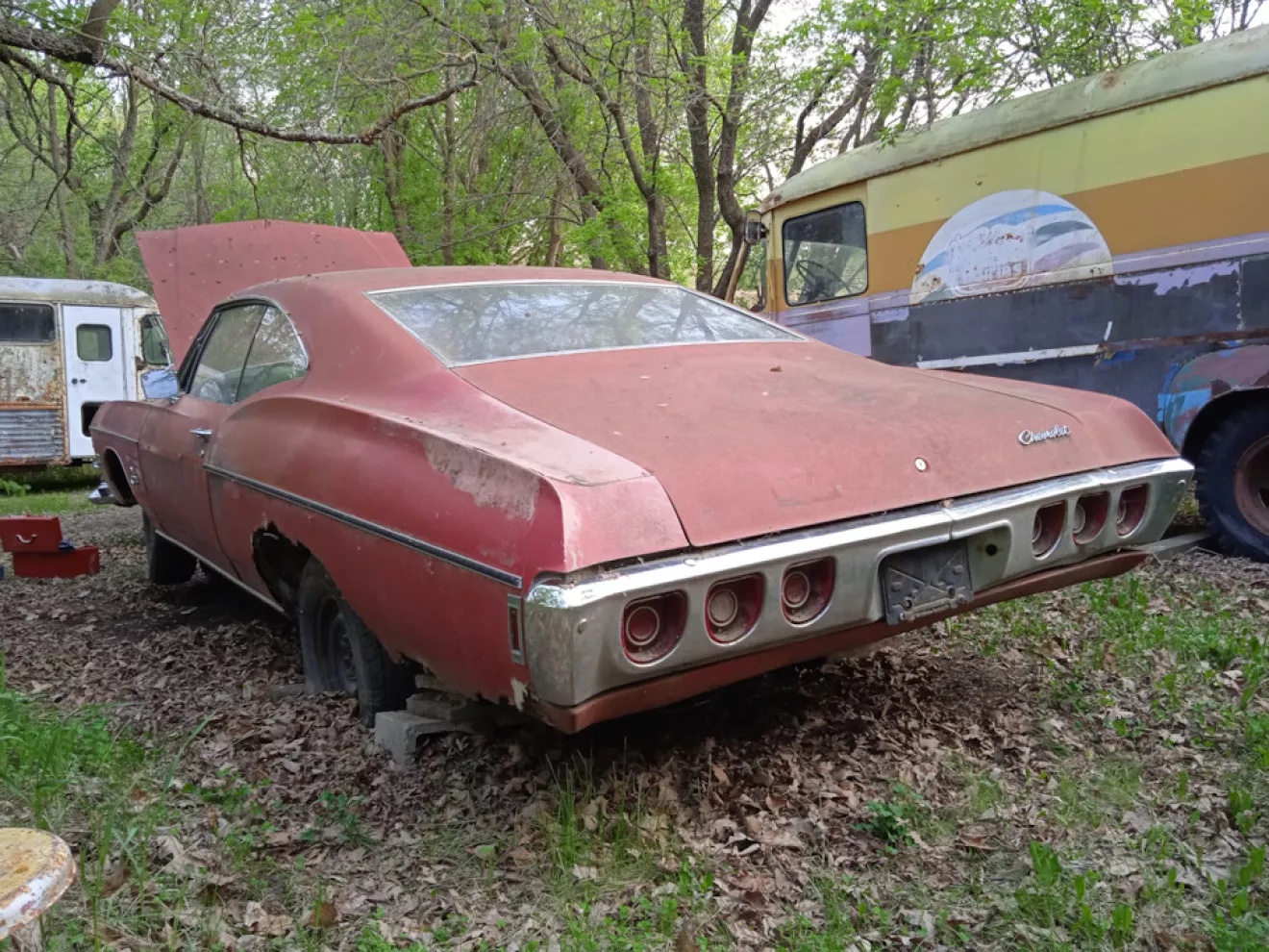 В моей системе координат Импала практически совершенный автомобиль — там сразу есть рама, причем очень сложной изогнутой формы, благодаря чему полы такие же глубокие как у несущих кузовов. Сам кузов, хоть и не несущий, но очень прочный — я снимал его с рамы и все функционировало. Кузов также очень несложный в ремонте. Подвеска сзади пружинная на 4 рычагах — возможно поэтому Импалу так сильно любят лоурайдеры. Спереди двойные рычаги, но очень простые в плане ремонта и все на сайлентблоках, которые также очень несложно меняются. Ничего подобного с/б на подвеске 31105 и близко нет. На моей машине тормоза барабанные, но в то время дисковые шли уже массово. В нынешнее время можно просто перебрать родные (все запчасти можно купить), либо сразу перейти на дисковые. ГУР в те годы уже обыденность, но для меня все еще круто — никакого изобретательства. Также на 68ых ставился кондиционер, машины с ним имеют слегка другую торпеду с дополнительными дефлекторами. Моя без него, но в будущем он точно пригодится, летом бывает невероятно жарко. Ну и во главе всего — двигатель. mOtor. Скоро 70 лет как их выпускают, в ходу уже пятое поколение, но архитектура все еще классическая — с распредвалом в развале блока. На моей машине с завода 327-кубовый вариант, по сути это блок самого массового 350-го мотора, только со слегка другими вращающимися частями. К сожалению он давно заклинил от стоянки, так что на первое время подменю его более ранним 283-кубовым.
