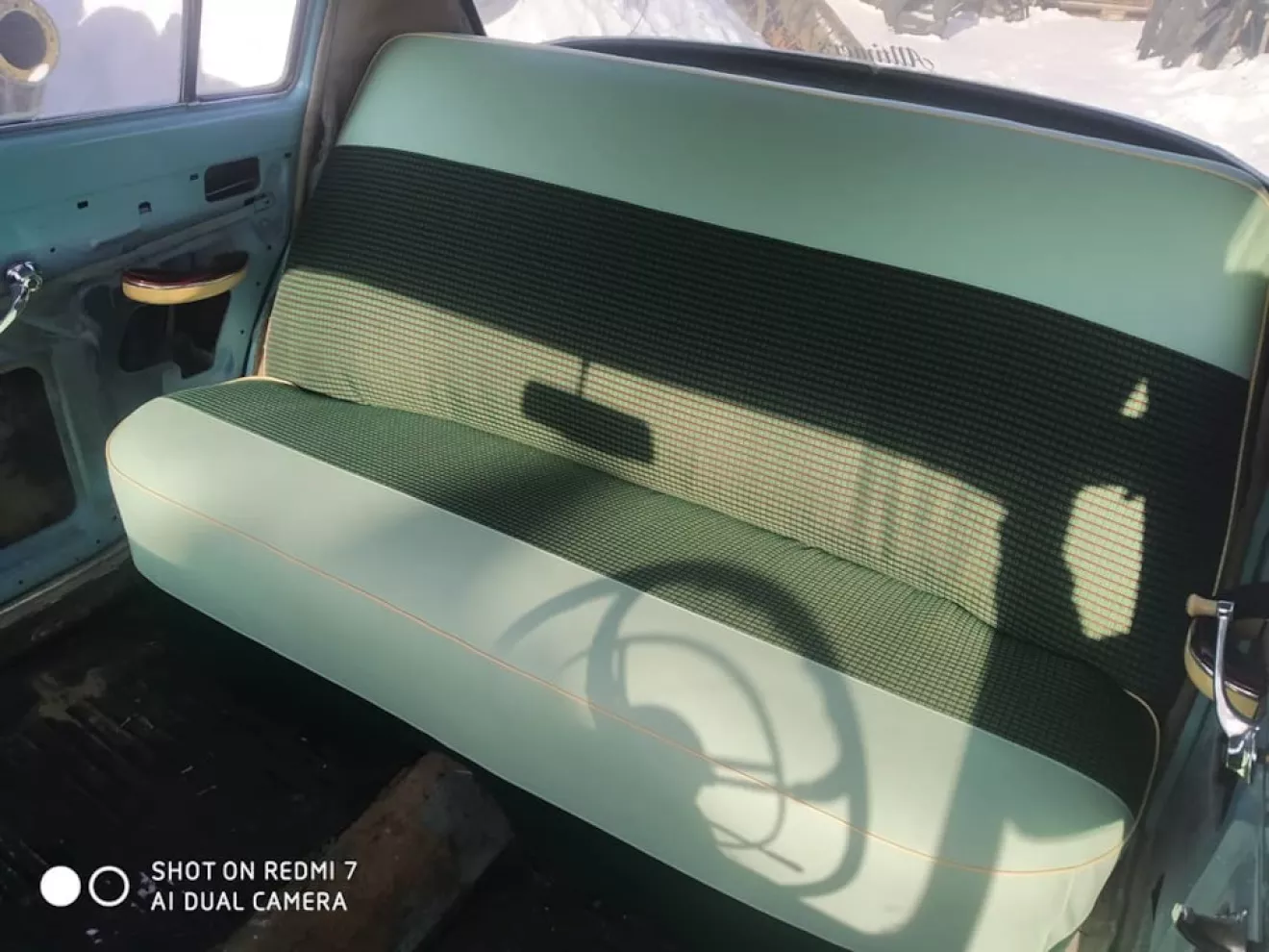 В 2019 году я восстановил товарищу его ГАЗ-21 (см. в бывших), и теперь к этой машине был сделан салон. Задумка была сделать в стиле оригинала, отобрать максимально похожие материалы хотя бы по наружке. Купили ткань ocep.tech (м-н Берёзка), очень долго искали кожзаменитель правильных цветов. По итогу получилась разновидность салона ранней 3 серии (несколько подобных вариантов салона находили по фото в объявлениях о продаже).