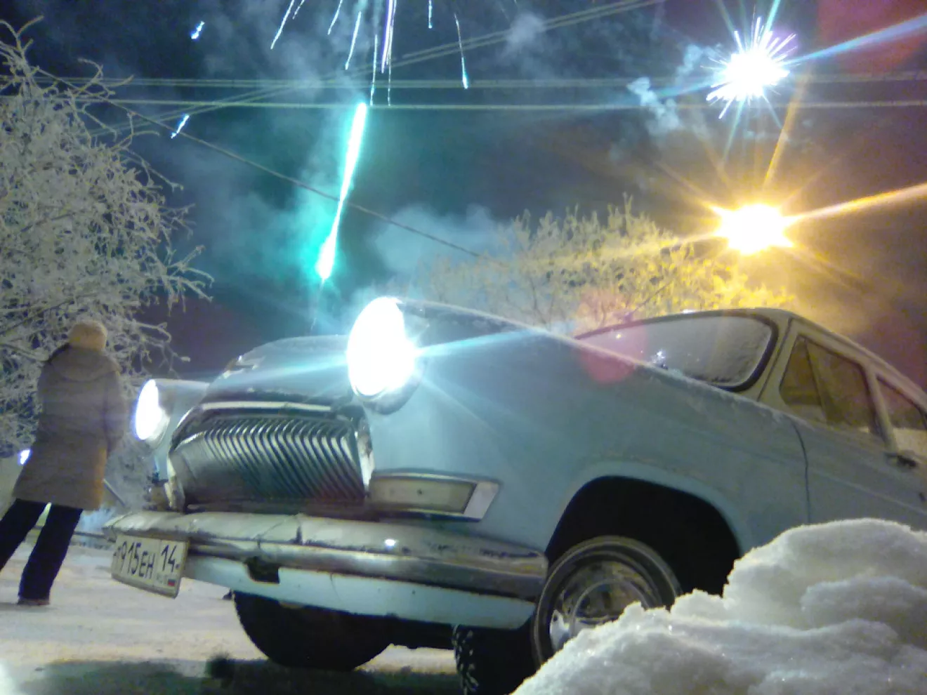 Очень долгое время я хотел Новый год встретить на 21-ой, но всегда что-то мешало) то машина была не готова, то разобрана, то я просто забывал об этом. Но вот наконец это сбылось. Вчера, после нескольких дней интенсивной работы, машина выехала на дороги. Для этого я поставил подогрев 220V, который меня ранее подвёл на двойке и электропомпу от газели. котел после отключения одного терморегулятора заработал нормально, а вот новая помпа в первый же выезд обосцалась. буду сдавать ее обратно (к удивлению, было вполне тепло и без неё). Забавно, что в -35 мотор с одной только картонкой перед радиатором не то что держал температуру, так еще и грелся)