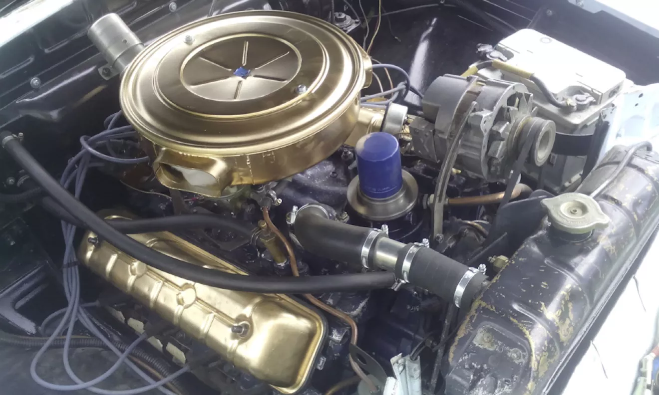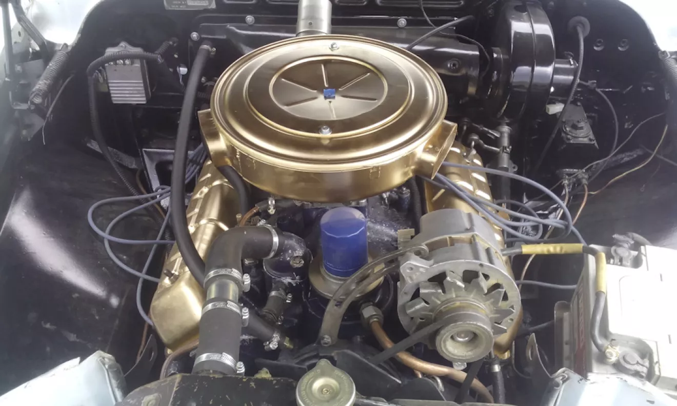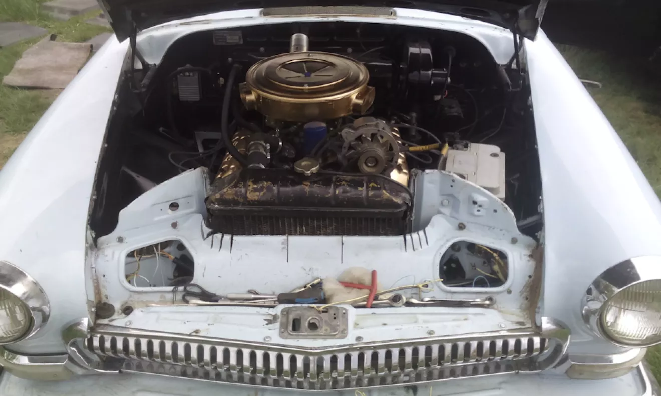 но наконец-то я поставил покрашенные воздушник и клапанные крышки на мотор. Как и писал ранее — цвета, это моя отсылочка и дань уважения первым современным верхнеклапанным "восьмеркам", что сидели под капотами огромных "кадиллаков", "олдсмобилей" и других американских авто 50-ых годов. Теперь подкапотка выглядит вот так.