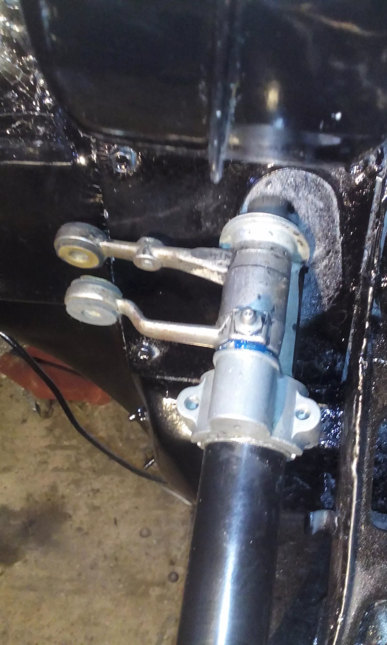 — Очень долго не хотел связываться с кулисой КПП, но час настал. проблема в том, что когда я переносил хомут кулисы вверх к моторному щиту, я неправильно насверлил дырку, в которую вставляется упор хомута (кто плавал — поймет; остальным приношу извинения) и из-за этого при переключении хомут сьезжал вниз и кулиса начинала выносить моск. перевернул кожух рулевого вала вверх дном и насверлил дырку теперь в правильном месте. проблема возникла, когда оказалось что рулевой вал имеет выступ, чтобы оный засаживался только в одном положении)) пришлось выступ пилить (а до этого долго думал, пилить или восстанавливать дырку в правильном месте). после этого примерно 2 часа бодался с регулировкой рычажков — но пролитая кровь-таки наградила результатом. теперь вполне сносно переключается) Перед установкой вал зачистил до металла, загрунтовал и покрасил легедарной НЦ-132 xD