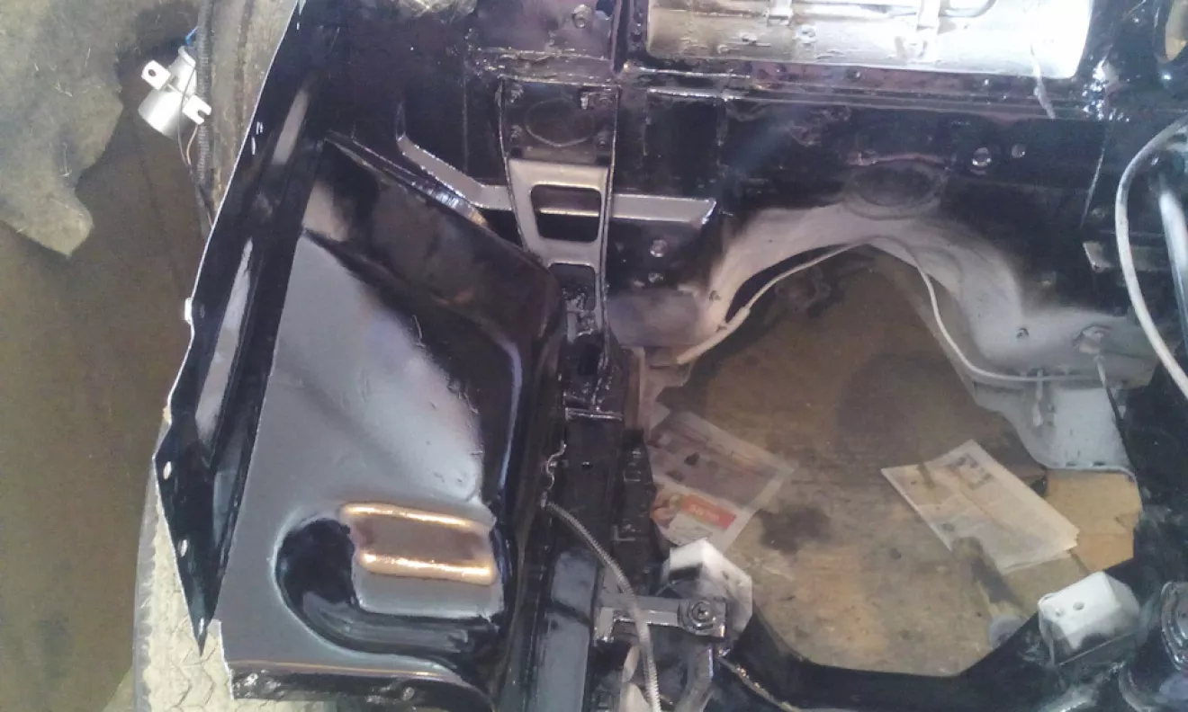 — Подкапотка после грунтовки была окрашена черной эмалью. За ночь хорошо подсохла, основные места вроде выглядят сносно. думаю для такого уровня сойдет