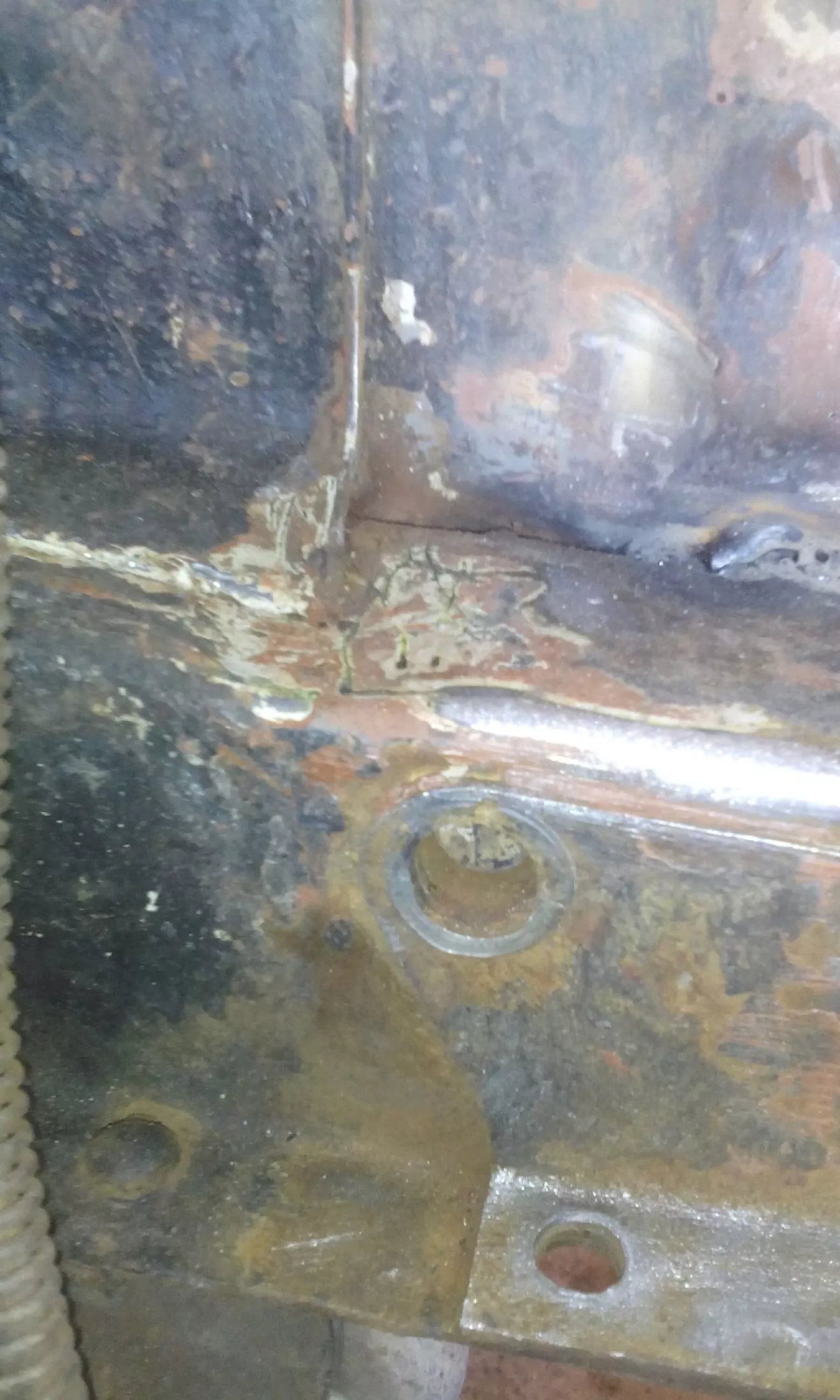 Также, обнаружил след прошлого — оказывается машина билась) при этом брызговики остались целыми и родными. но лонжерон все-таки слегка погнут в передней части. хотел сначала попробовать вытянуть — теоретически возможность есть, но посмотрим как пойдет.