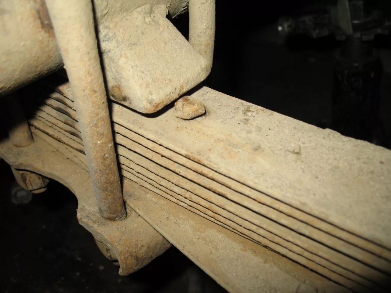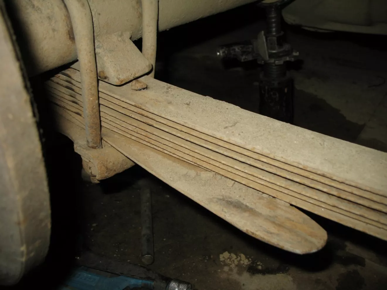 в-общем, оказалось что срезало стяжной болт рессор, они рассыпались (а два нижних листа еще и лопнули до этого) и мост вырвался на свободу, представив себя рулевой осью. так обидно стало, не доездил всего двух недель до переборки с запилом! %))) ё-маё. в-общем, рессора в течении дня была снята, а под рукой совершенно случайно завалялась запасная от найденной на свалке Р-ки 68 года, в полном сборе. воткнули ее, попутно сменив втулки (задние-то менял летом и помазал литолом шоп легче заходили. маладЭц — все рассыпалось). поставив, оказалось что поставили наоборот! %)))) облом так облом. но зато на следующий день, процедура по поворачиванию рессоры заняла длину одного радиоинтервью Ильи Сорокина :)