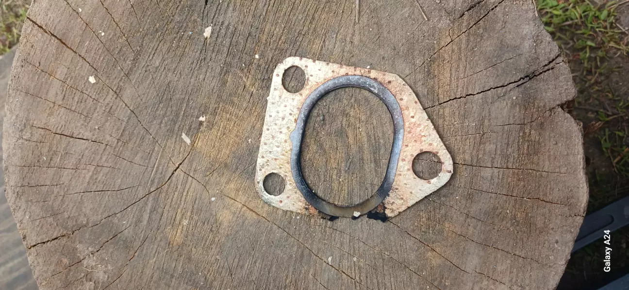 Одного злополучного дня їду собі і ні про що не здогадуюся, і тут з під капота почувся дорогий звук)... ззаду дим. Лягла турбіна, все що прийшло на думку. На СТО сказали 30к грн і зробимо. Я вирішив сам розібратися. І виявилося що прогоріла прокладка між випускник коректором і турбіною (на фото видно). Чомусь один з трьох болтів був відпущений що кріпить турбіну до колектора. Заміним прокладку (ELRING, 195грн) і авто знову на ходу).
