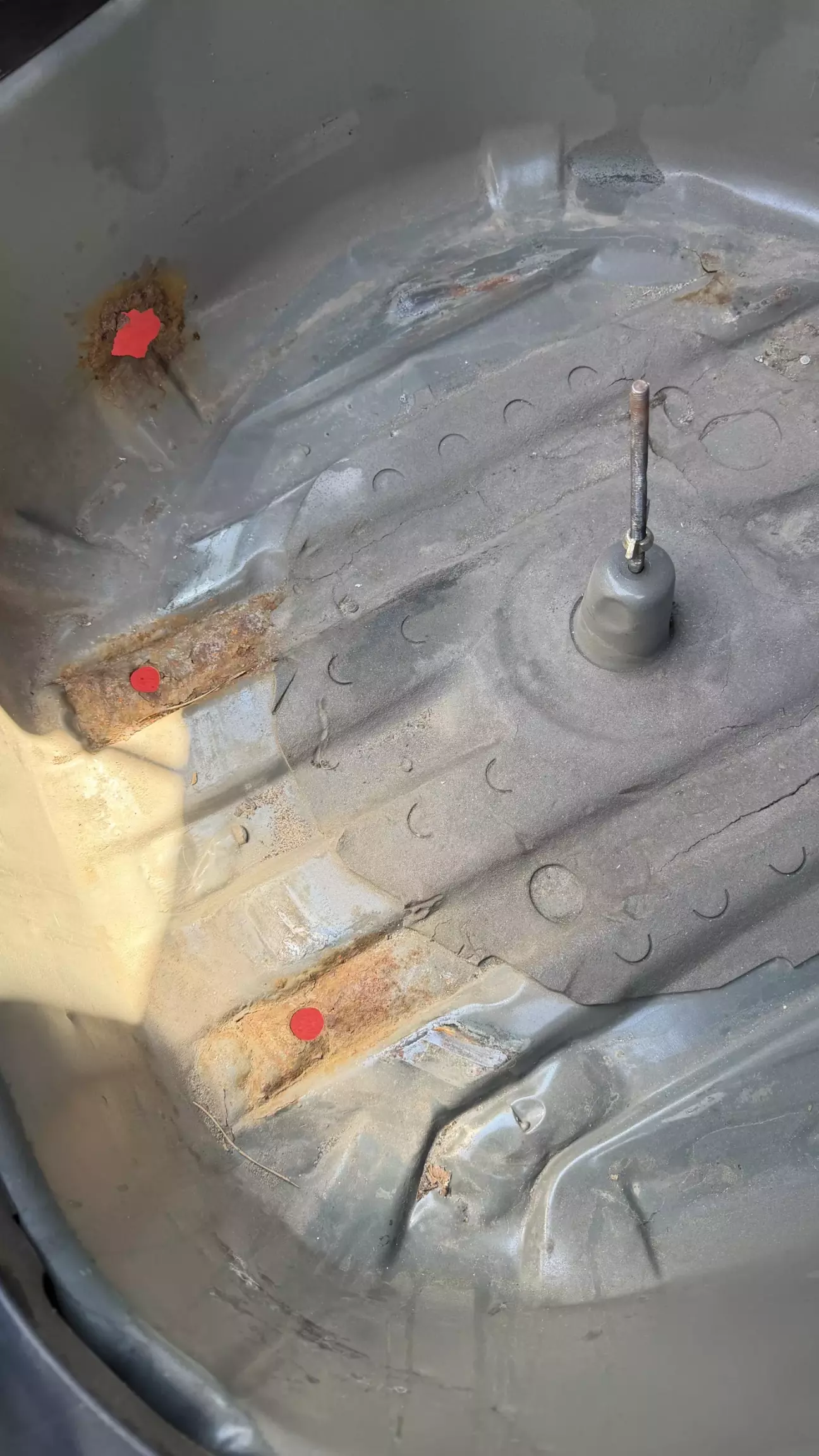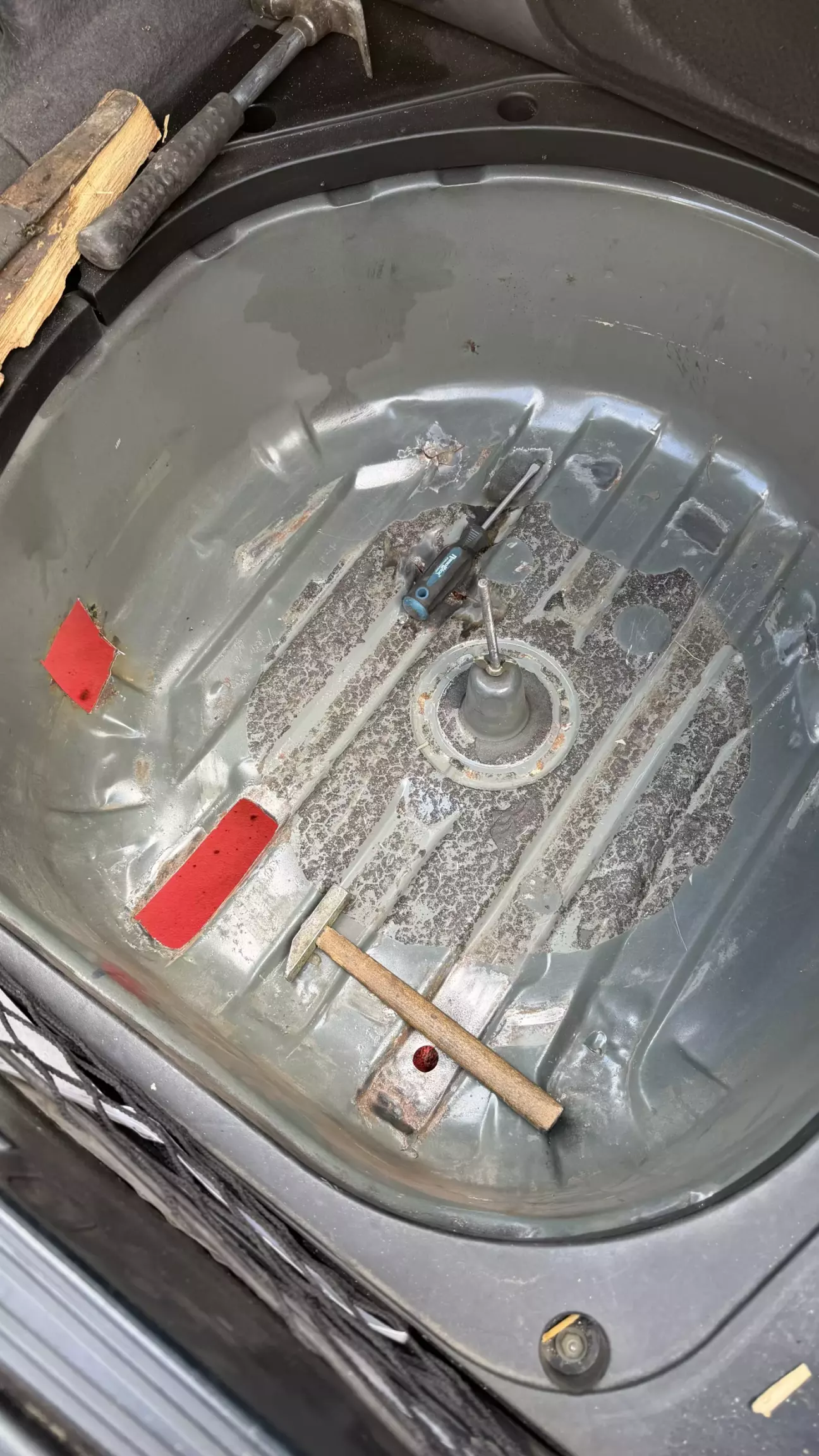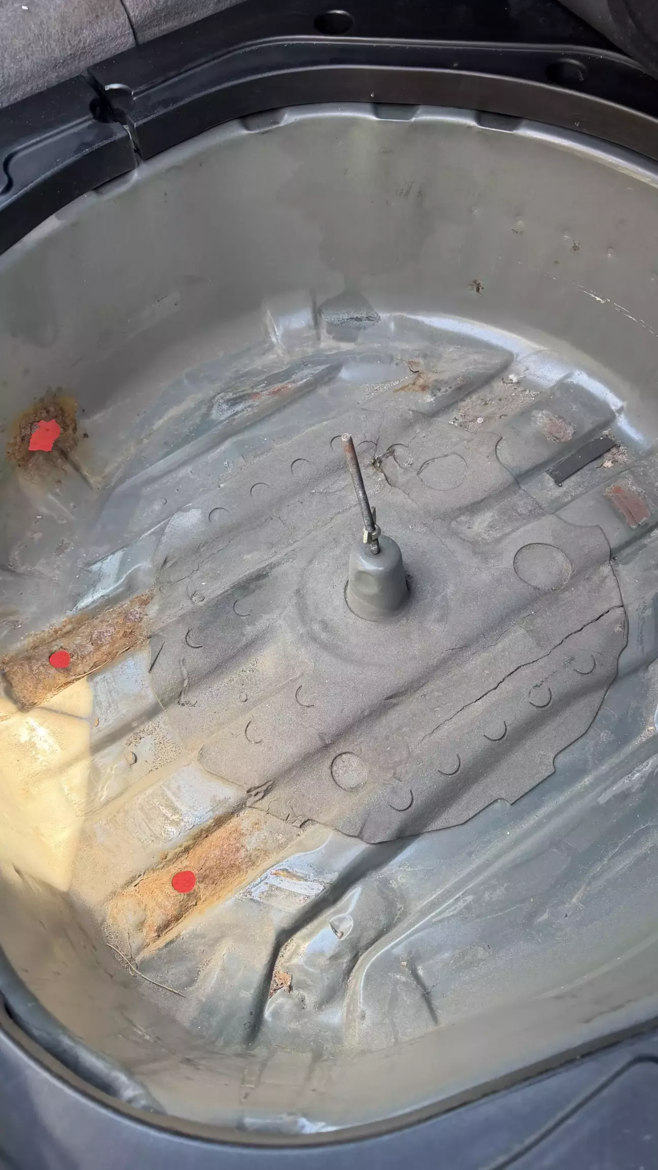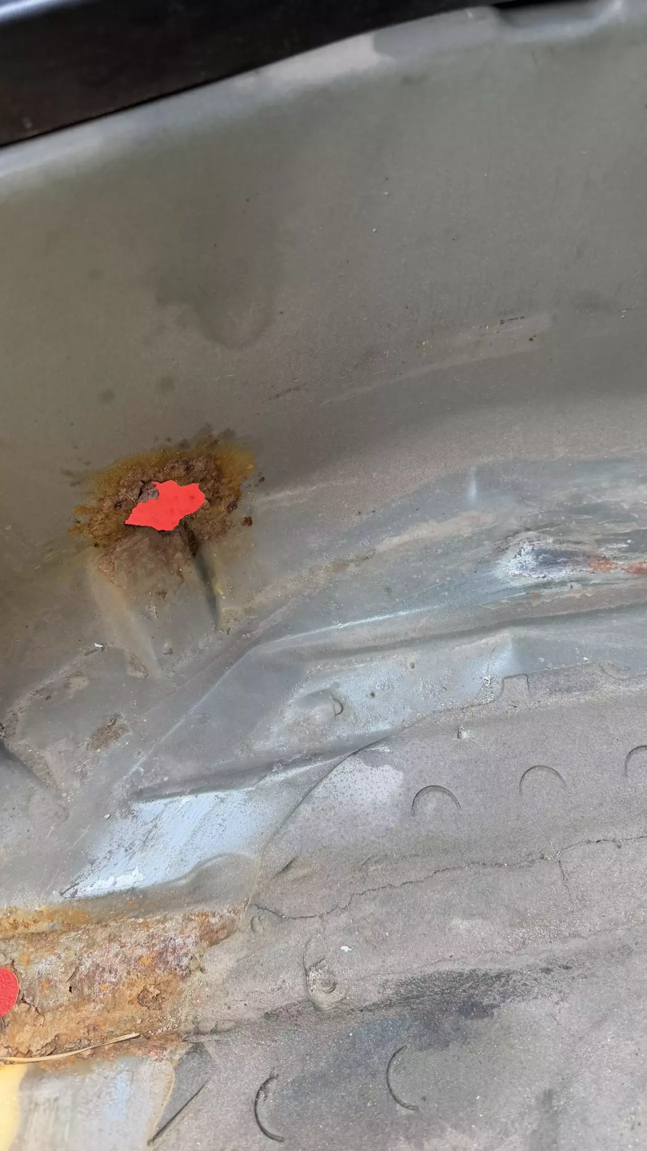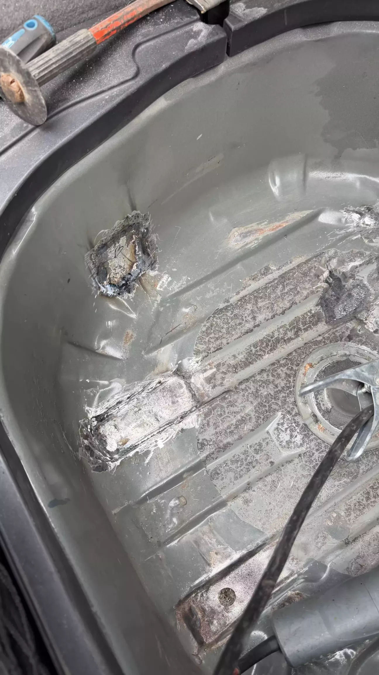 Еще при покупке, было не заводское отверстие в нише запаски, после зимы, ситуация усугубилась, так как взял сугроб на абордаж, я замял ее немного и добавилось пару разрывов. Дошли руки и все вынув, зачистил, вырезали латки, обварили хорошо, промазал швы и обработал. Теперь все очаги коррозии убраны, а отверстия сделаны.