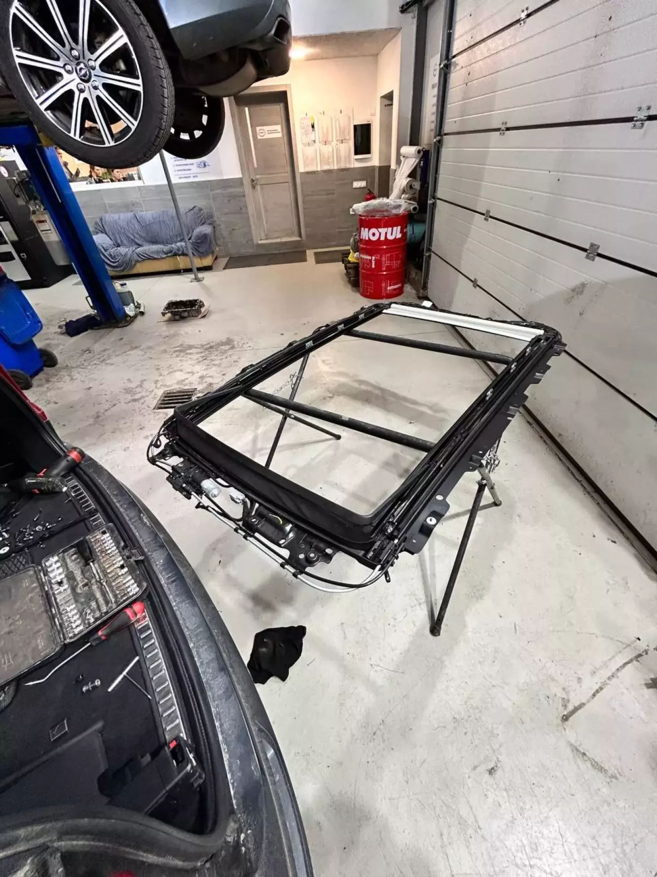 Чергу довелося чекати близько тижня. Настав день вирішення питання. Приїжджаю в гараж, майстер приспускає дах ззаду, вставляє шестигранник і каже: “Тут заклинило. Треба міняти каркас у зборі.” Все зібрали назад, взяли 4500 грн за діагностику і дали пораду: “Їдь купуй панораму, а ми поставимо.”